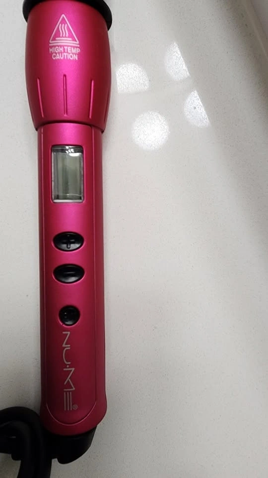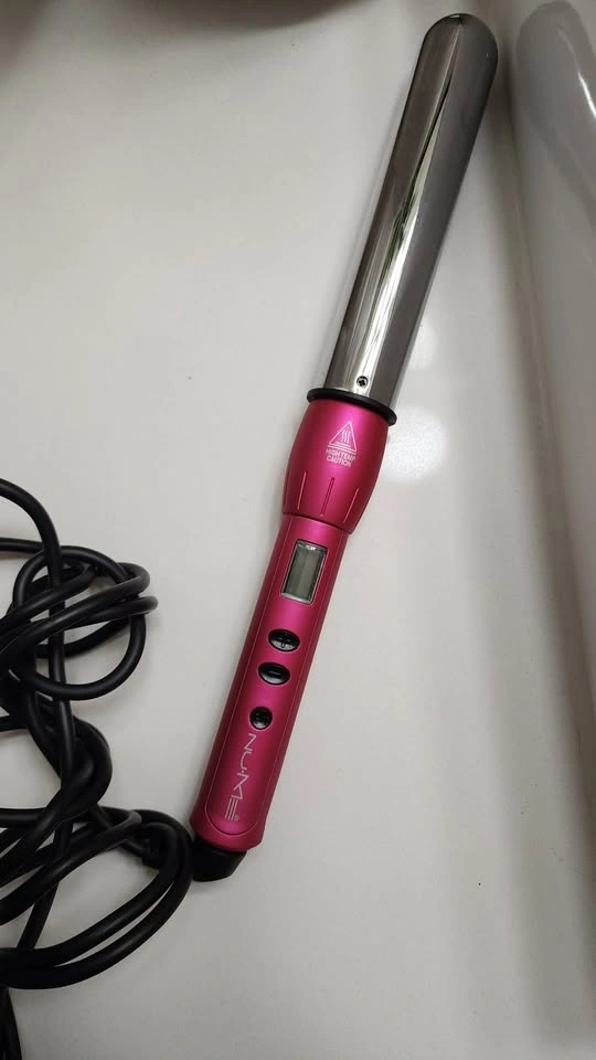 Salon grade curling wand in perfect condition. Features 60-minute automatic shutoff, on-off power button with indicator light, digital display and temperature control (140-450 degrees F), far infrared heat, negative ion conditioning technology, fully rotating swivel power cord, ergonomic design, and dual voltage (110-240V).