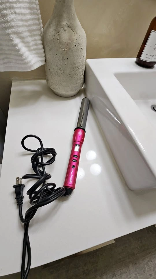 Salon grade curling wand in perfect condition. Features 60-minute automatic shutoff, on-off power button with indicator light, digital display and temperature control (140-450 degrees F), far infrared heat, negative ion conditioning technology, fully rotating swivel power cord, ergonomic design, and dual voltage (110-240V).