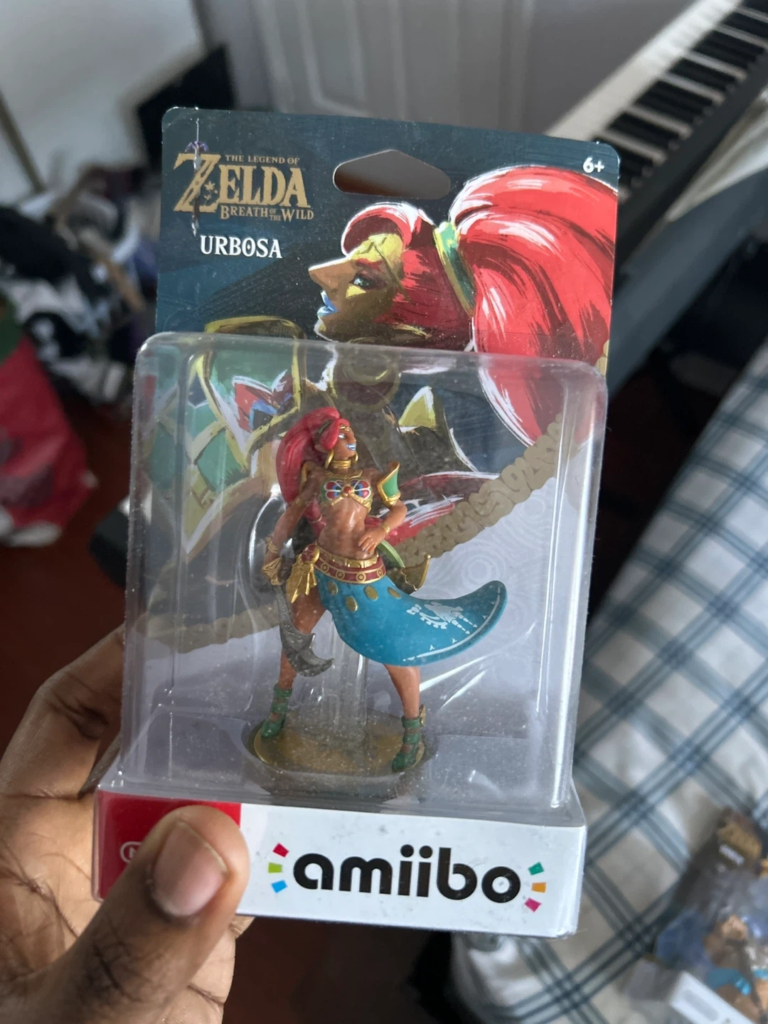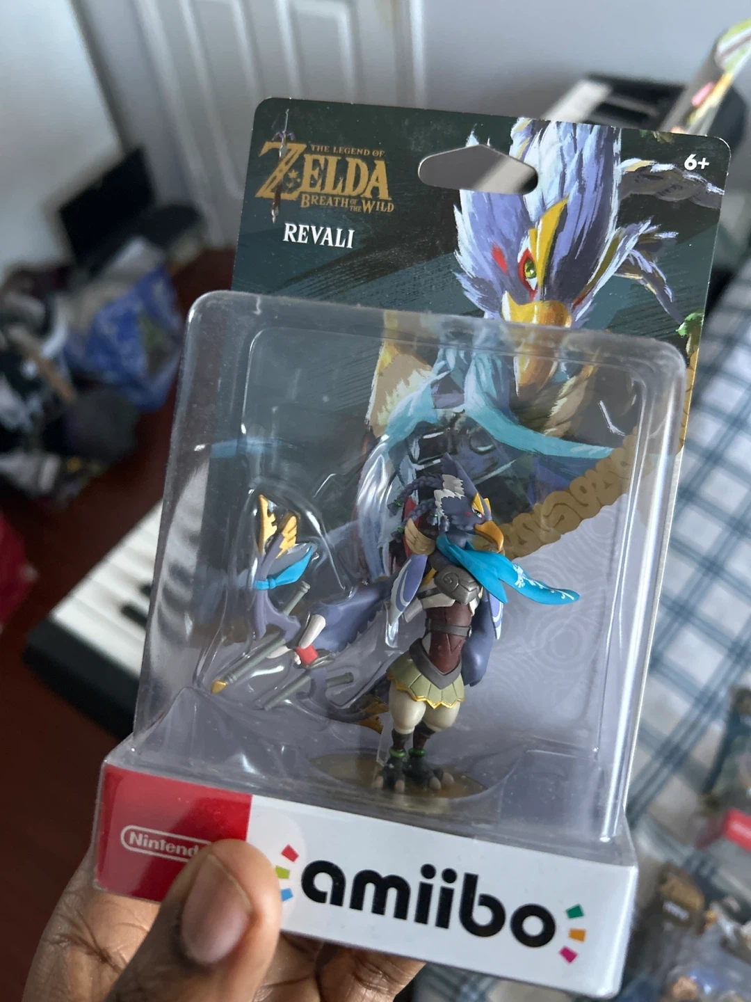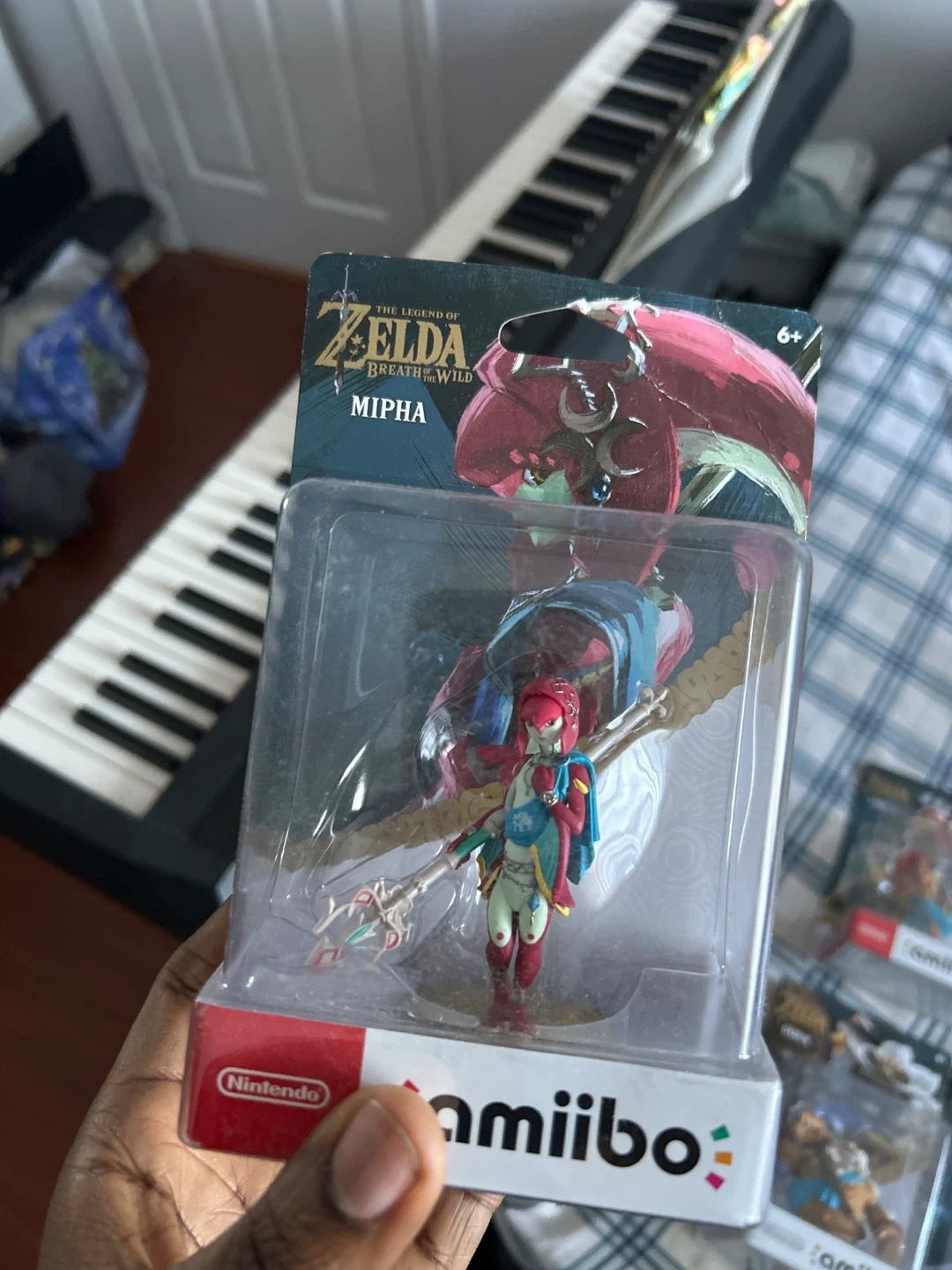 Four Nintendo Amiibo figures from The Legend of Zelda: Breath of the Wild series. Includes Mipha, Urbosa, Daruk, and Revali. Figures are new in packaging. Revali and Derik boxes in fantastic condition. Urbosa and Mipha boxes in decent condition