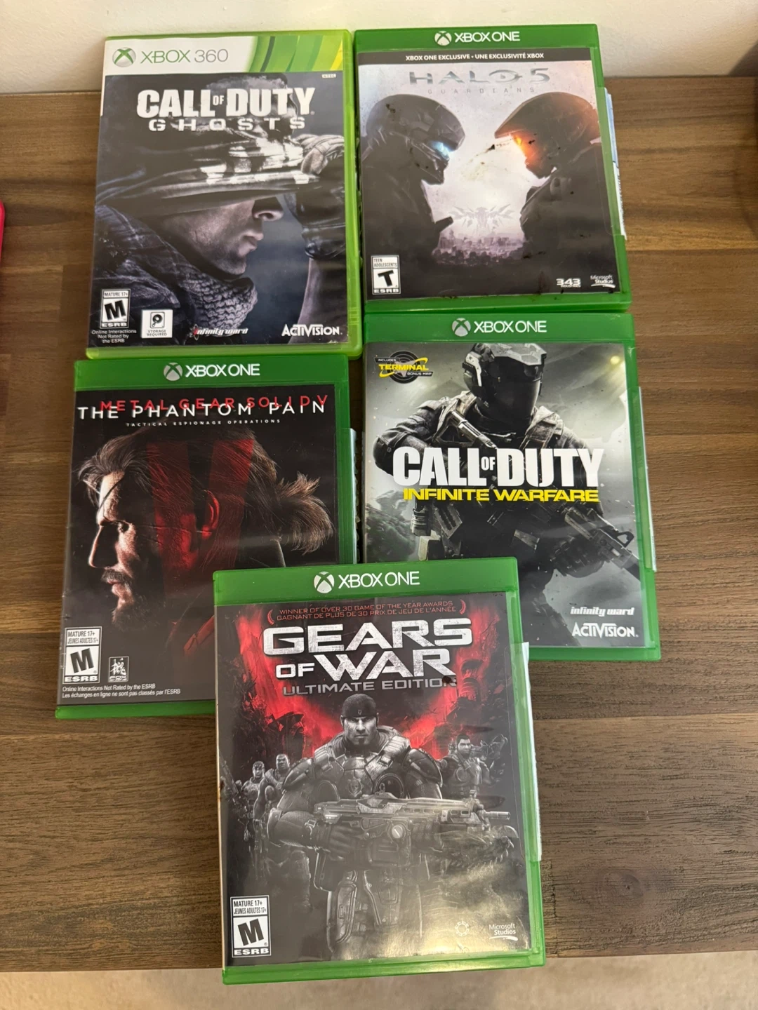 Selling a few Xbox games! Includes Gears of War Ultimate Edition, Call of Duty Infinite Warfare, Call of Duty Ghosts, and Halo 5 Guardians
