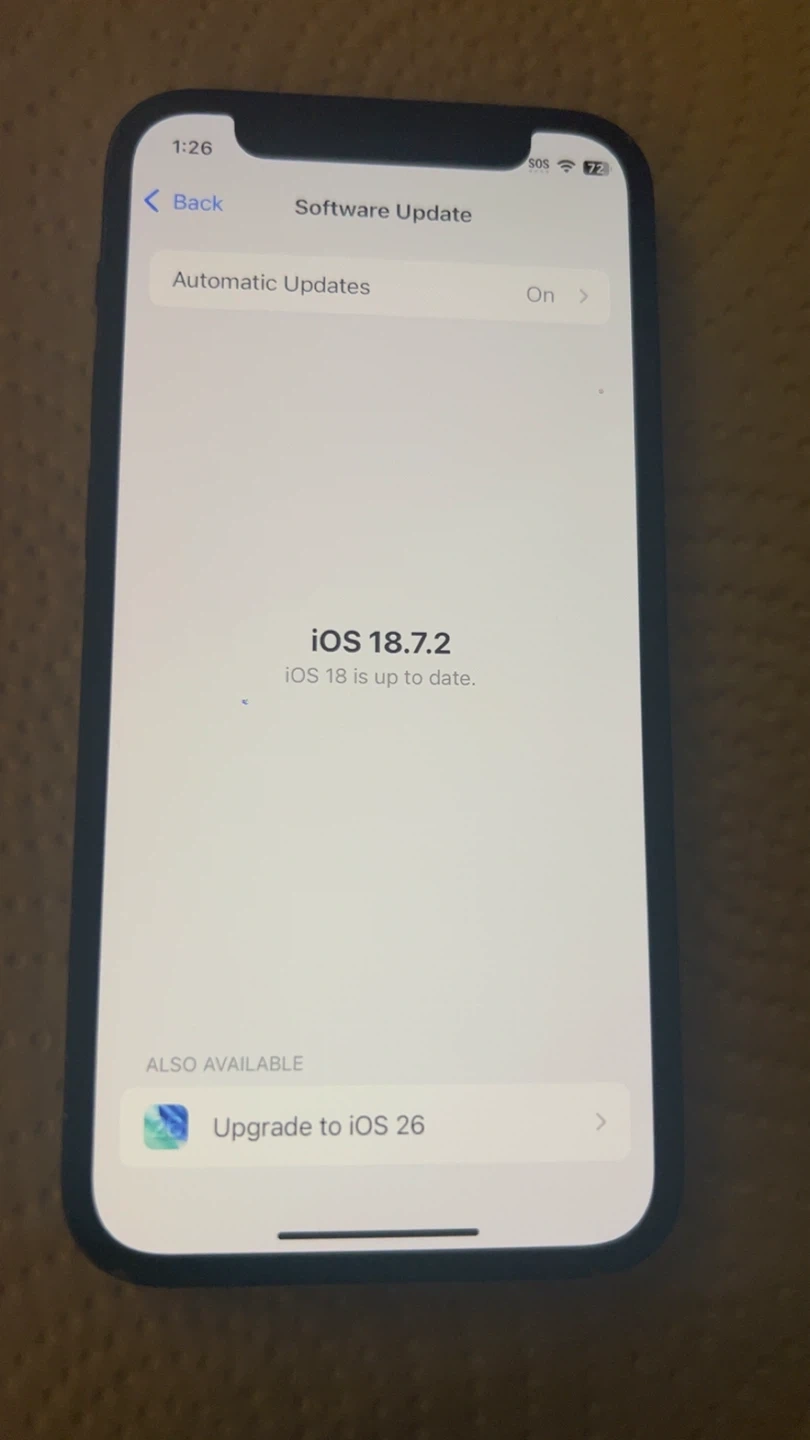 Selling an iPhone 12 mini with 128GB of storage. The model number is MGDJ3VC/A. It's running iOS version 18.7.2