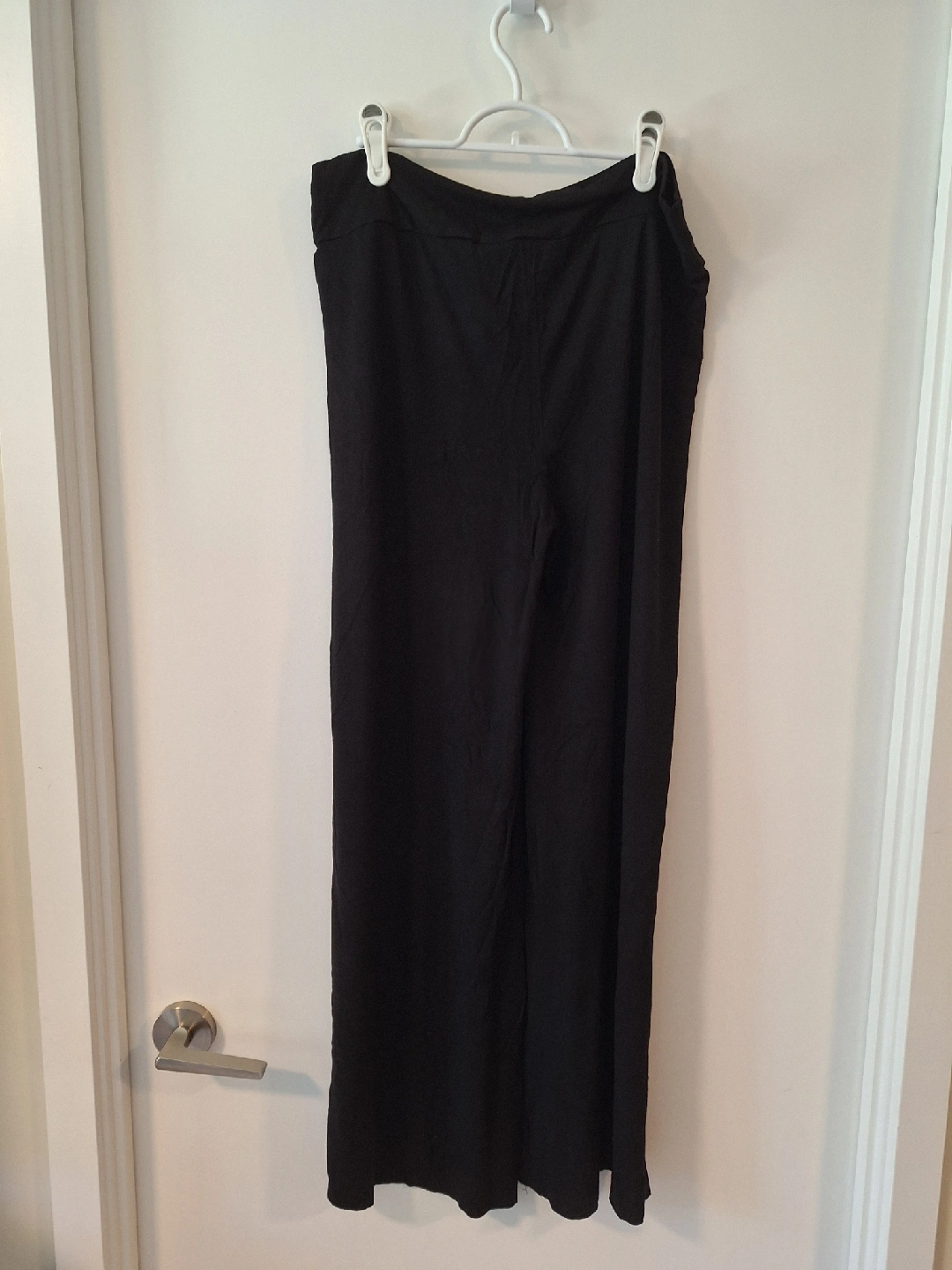 Selling a pair of black culotte pants from White Wash. These pants are great for everyday wear or yoga! They are made of 95% rayon and 5% spandex, making them comfortable and stretchy. Sz Large.