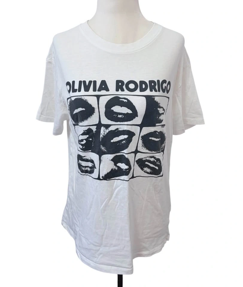 Olivia Rodrigo Graphic T-Shirt Oversized XS White Black Lips Con