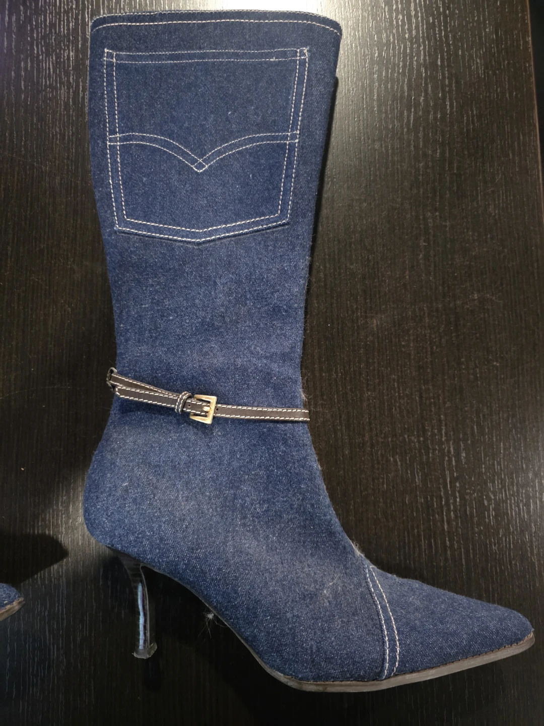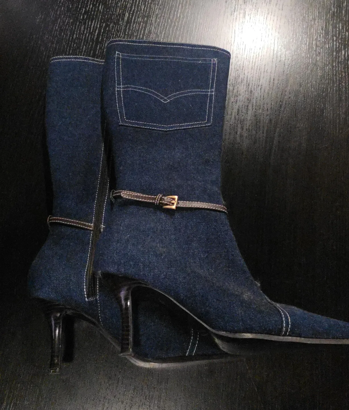 Buy & SellDenim Boots with Buckle DetailDenim Boots with Buckle Detail$45Stylish denim boots featuring a classic pocket design on the shaft. They have a pointed toe and a slender heel with a buckle accent strap.ConditionLike newSize9WHERE TO MEETScruffy MurphysView MapSELLERverifiedAlliCloverdale Mall650 reviews0 chats·0 favorites·14 viewsSEND CHAT TO SELLERHi Alli! I’m interested in your listing.Hi Alli! I’m interested in your listing.Get the Karrot app to chatSign In to chat