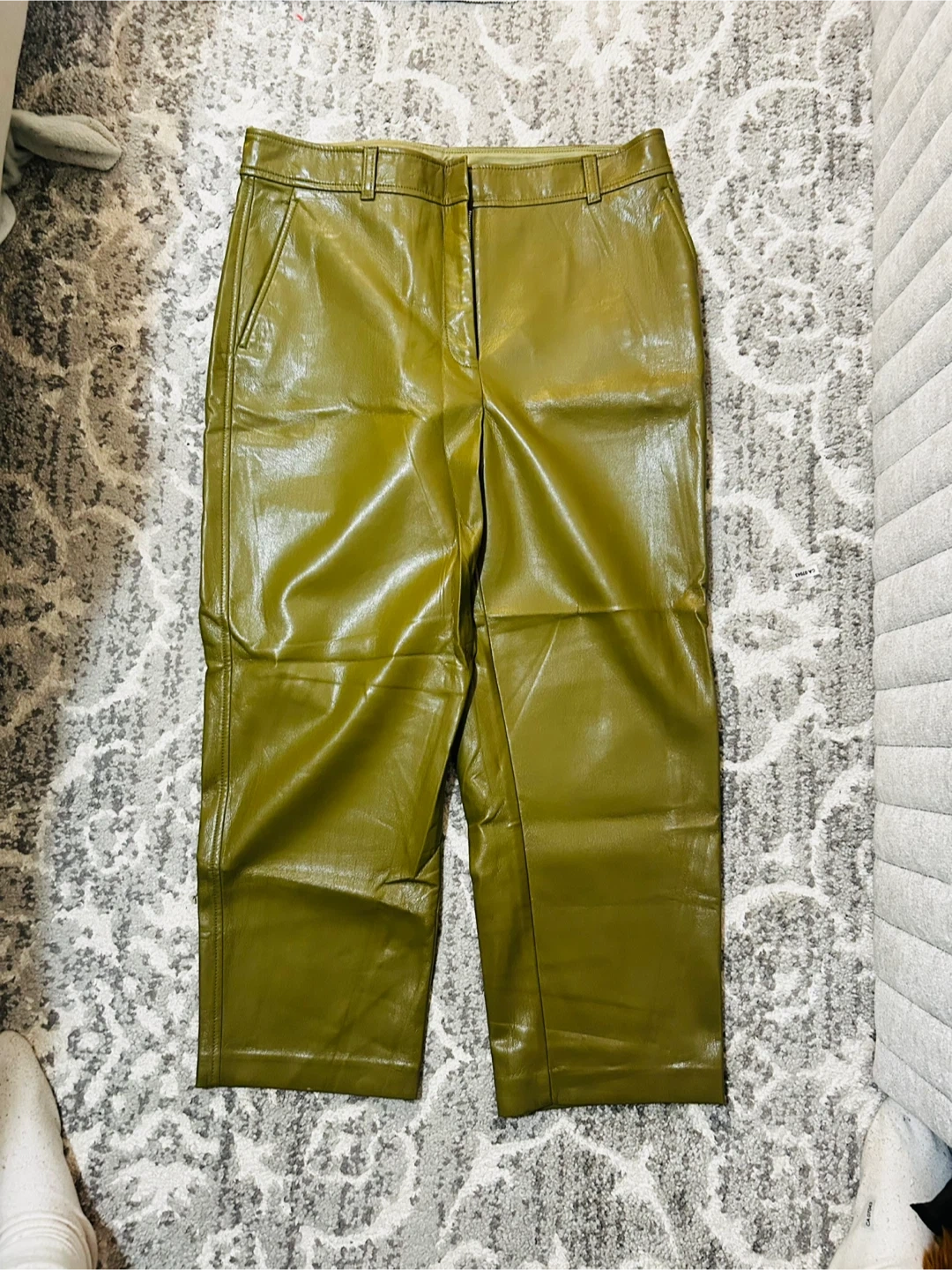 Selling a pair of Babaton vegan leather pants in a unique olive green colour. They are a size 12 and in great condition. These pants are sure to make a statement!