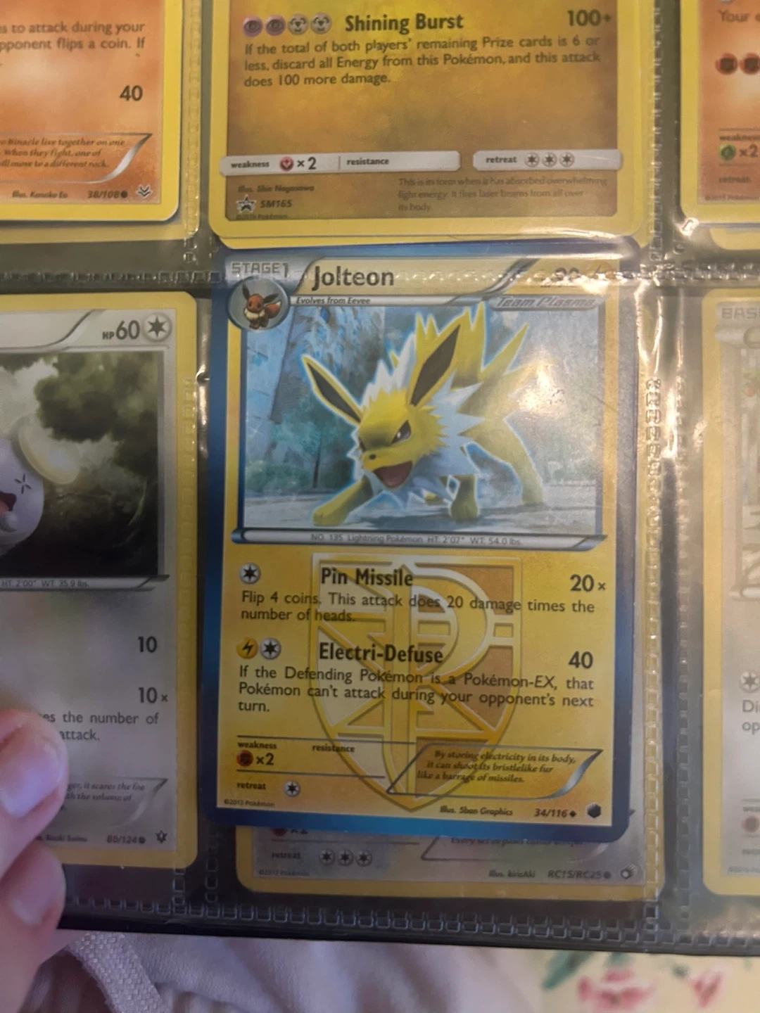 Selling a Jolteon Team Plasma Pokémon card! It's in good condition and ready to join your collection! This card has some cool attacks like Pin Missile and Electri-Defuse. A great addition for any Pokémon fan