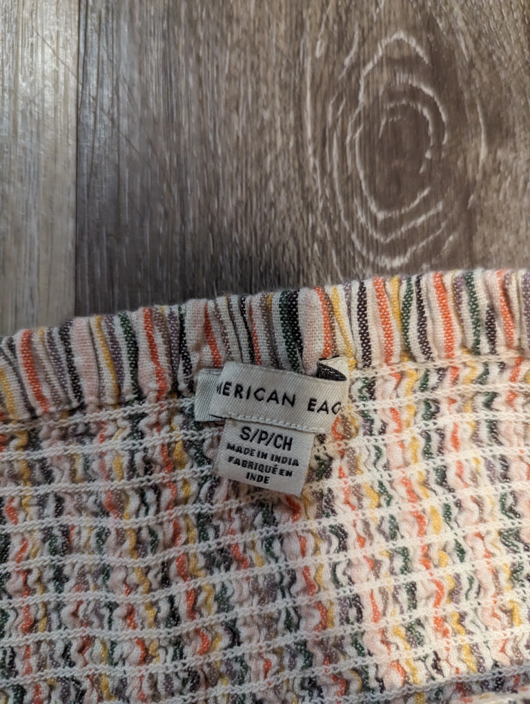 Sleeveless pleated tube top from American Eagle. Super comfortable, I've also worn it as a skirt 😂 Women's size small.