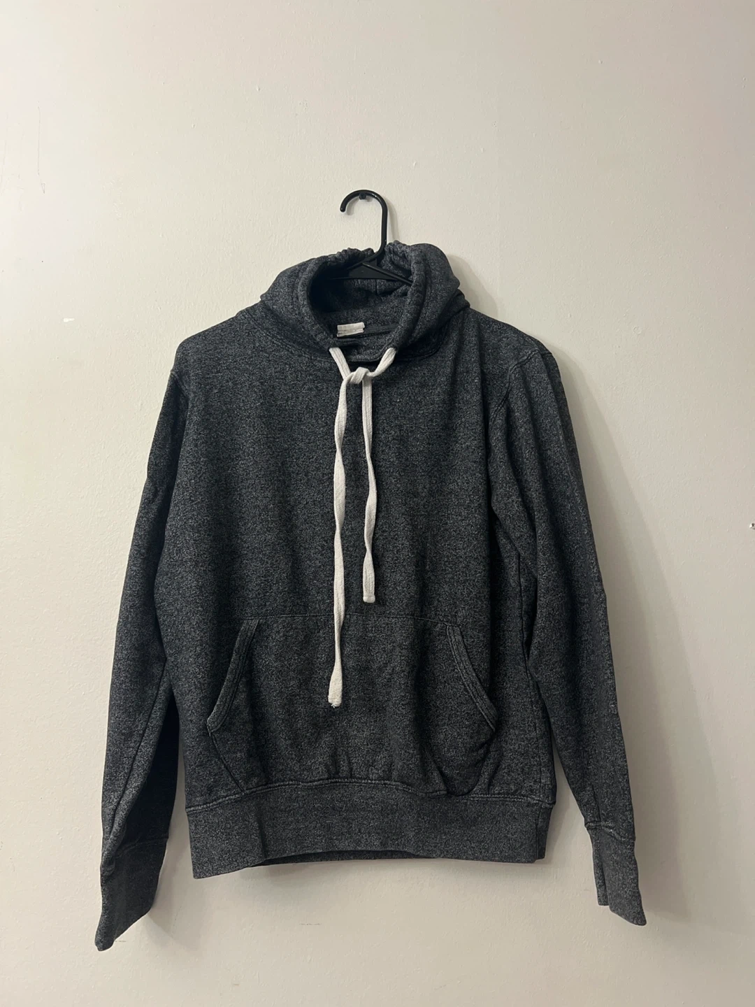 Selling a comfy grey hoodie! It's in great condition and perfect for layering or just lounging around. It features a classic design with a drawstring hood and a convenient front pocket. A versatile addition to any wardrobe!