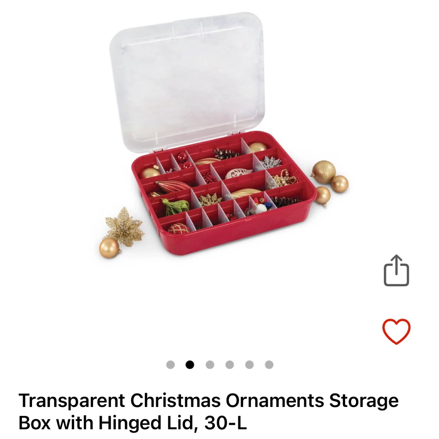 Keep your precious ornaments safe and organized with this Christmas ornaments storage box! It comes with a hinged lid and measures 20.4" x 17.4" x 4.1". Perfect for keeping your holiday decorations in tip-top shape for years to come