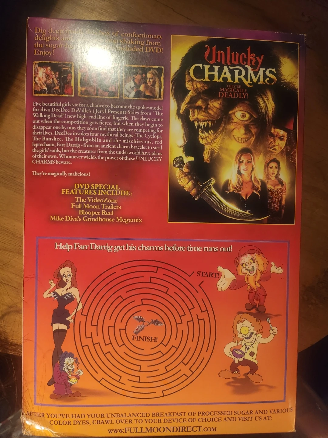 I am selling a Limited Collector's Edition of Unlucky Charms on DVD. It was released at San Diego Comic Con in 2013. Only 1,000 boxes were made. This edition includes DVD special features like The VidaZine, Full Moon Trailers, Blooper Reel, and Mike Diva's Grindhouse Megamix.
