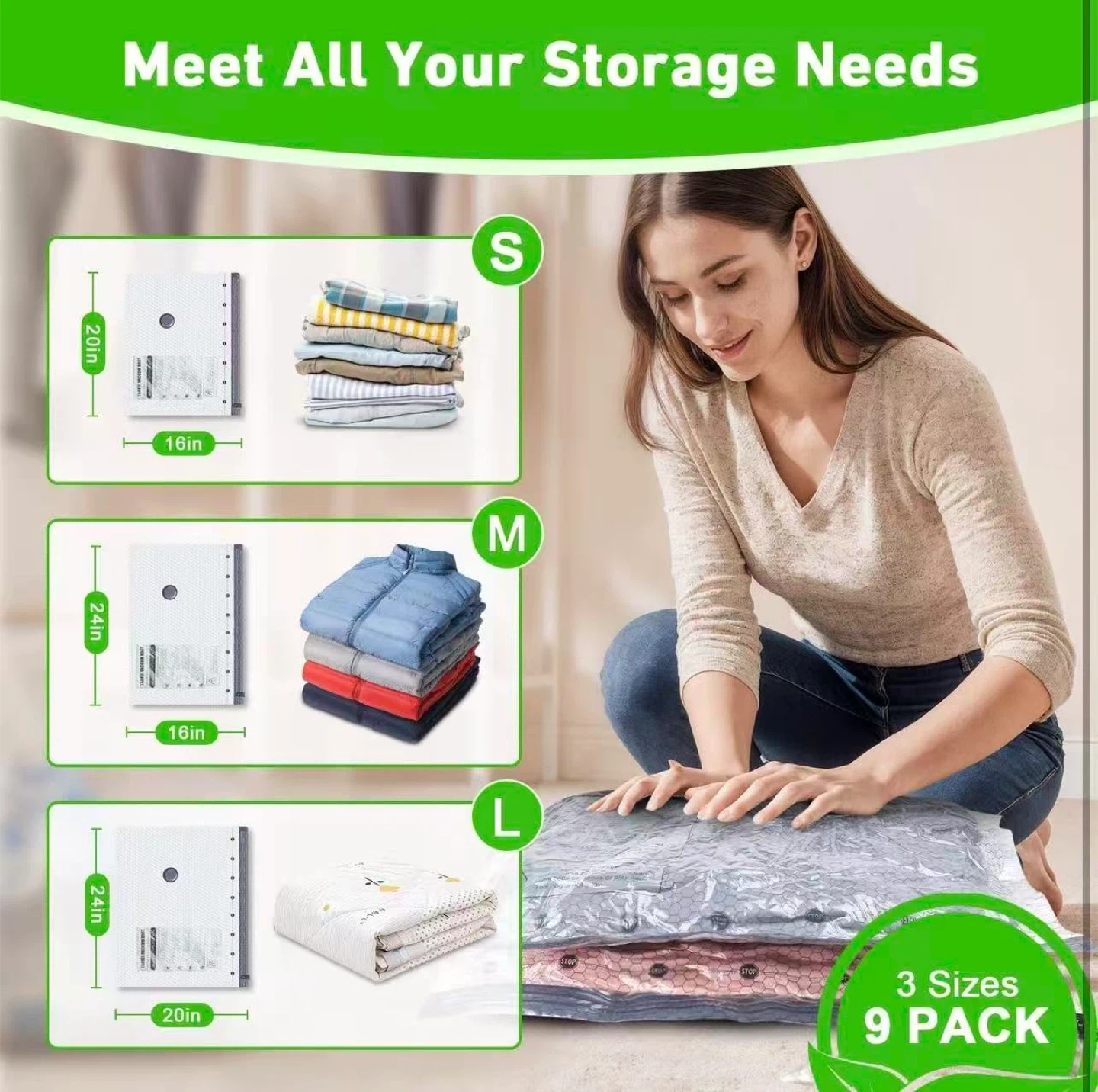 Vacuum Seal Bags for Clothing with Wireless Electric Pump - Travel & Home Use, 9 Pack Ideal Space Saver Vacuum Storage Bags, Travel Vacuum Bags for Luggage