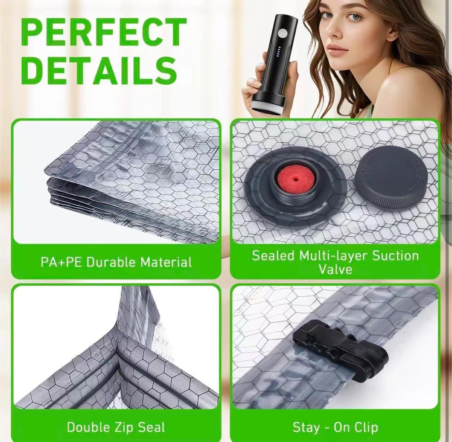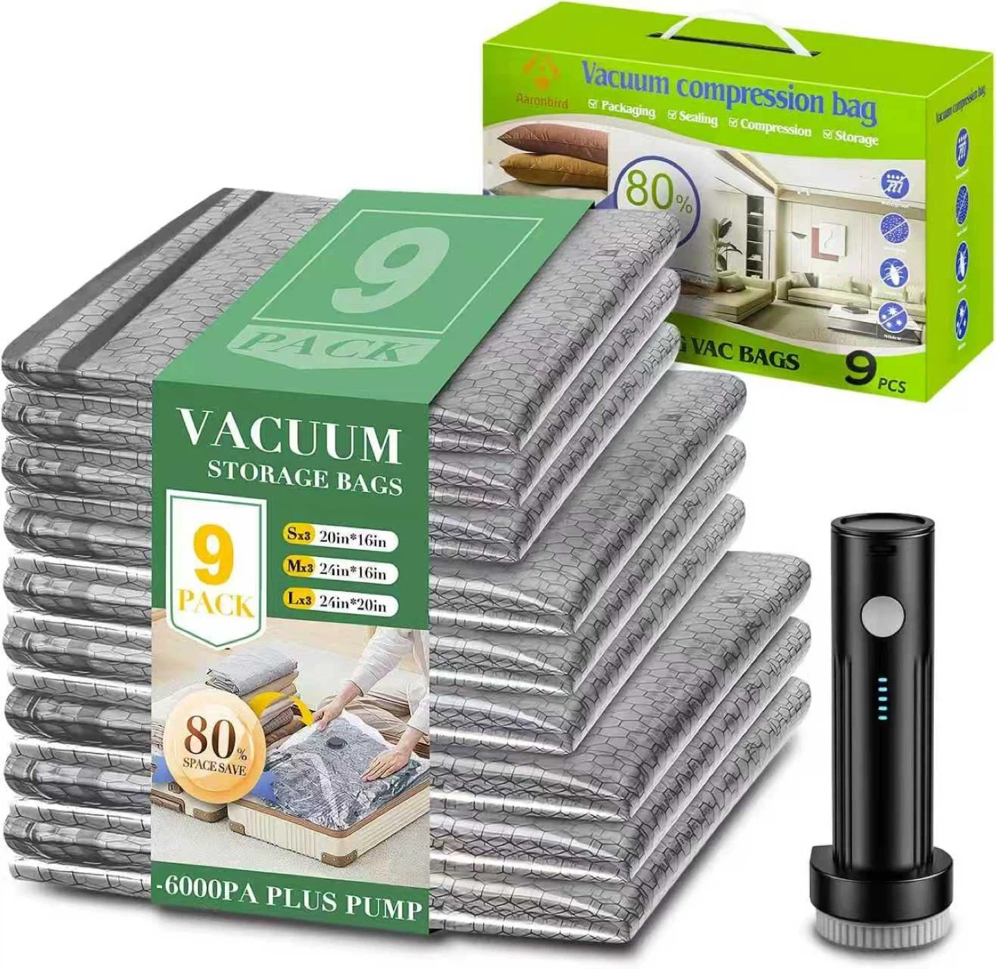 Vacuum Seal Bags for Clothing with Wireless Electric Pump - Travel & Home Use, 9 Pack Ideal Space Saver Vacuum Storage Bags, Travel Vacuum Bags for Luggage