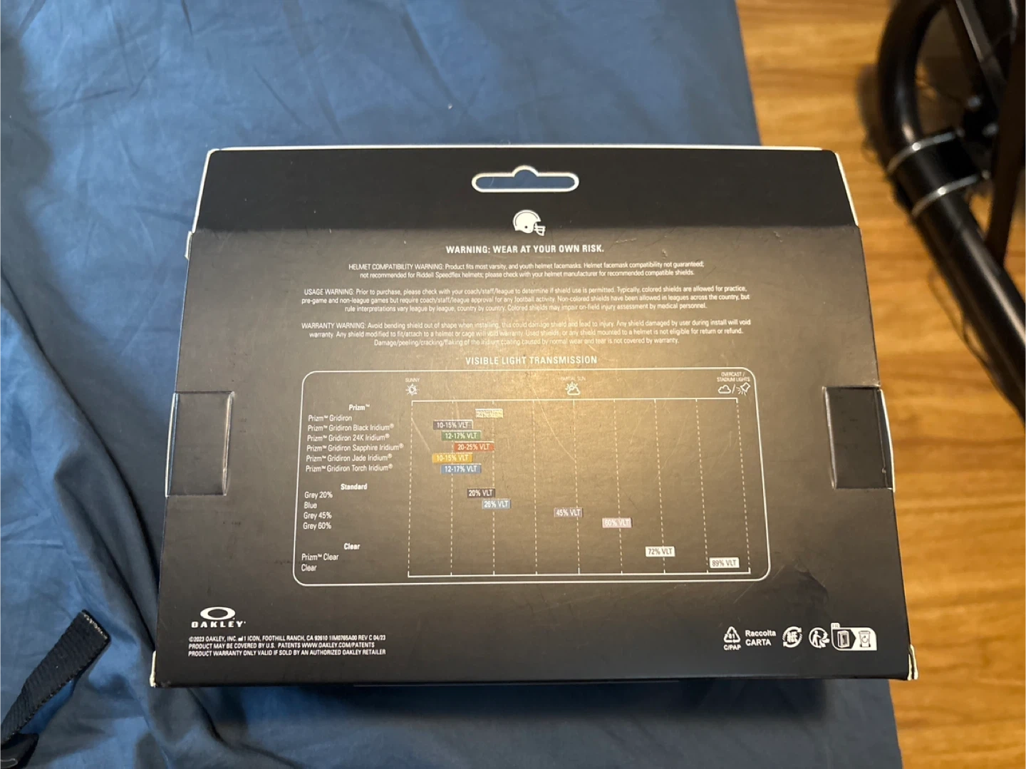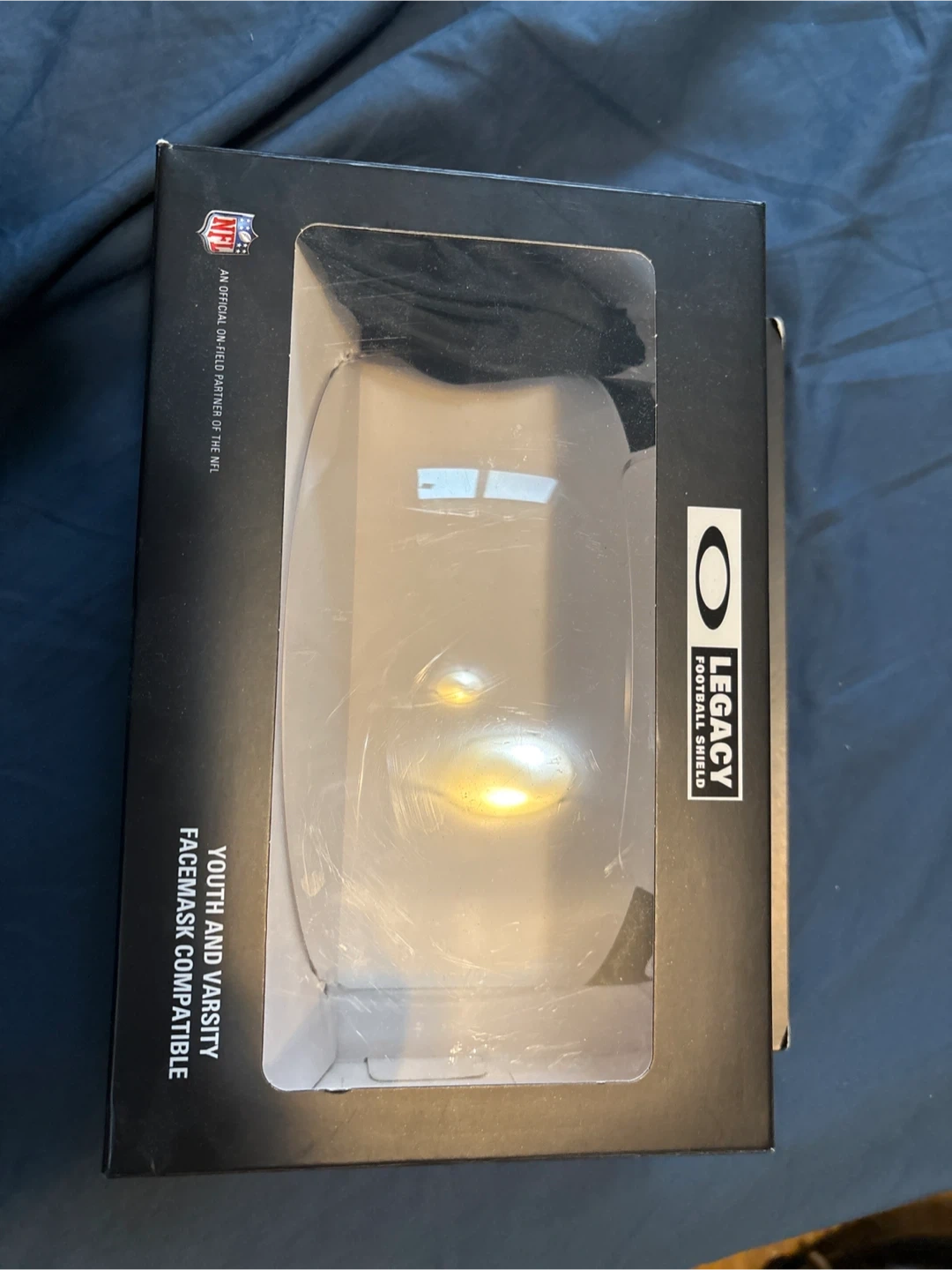 Selling this Oakley shield for football. It comes with the protective sleeve and the clips, I sadly don’t have the stickers. It has a little scratch on the middle but it doesn’t affect the vision