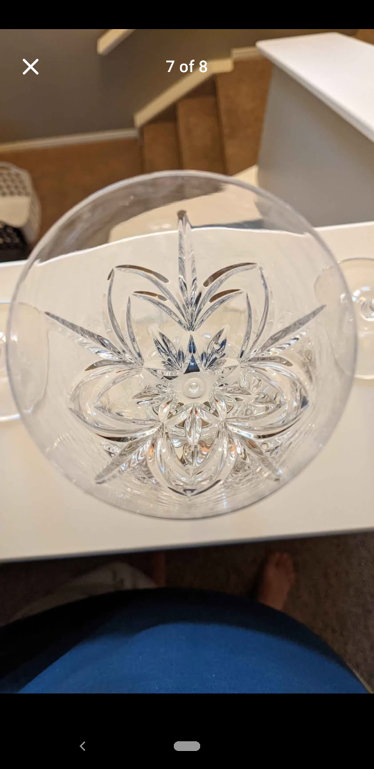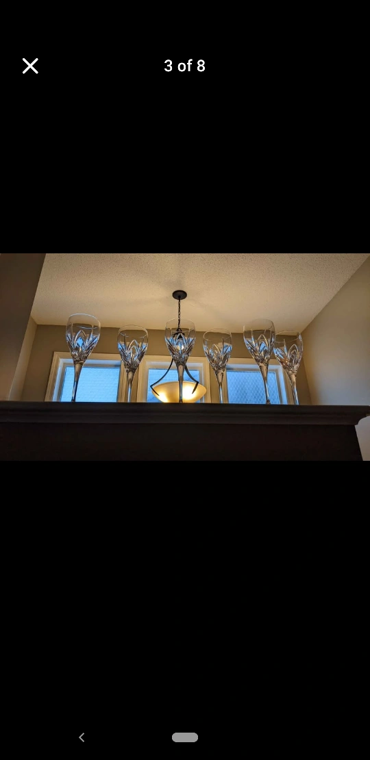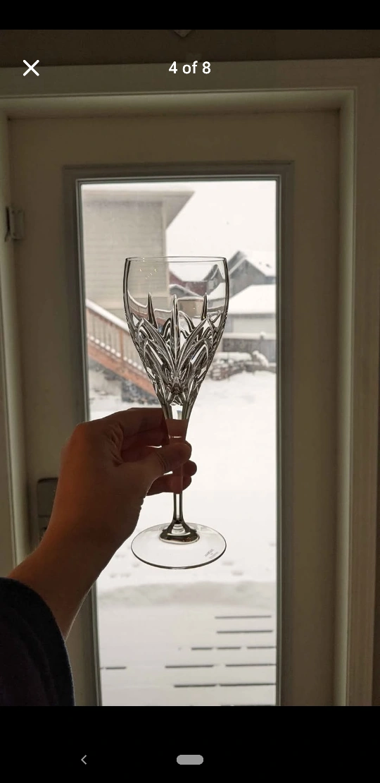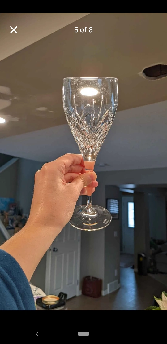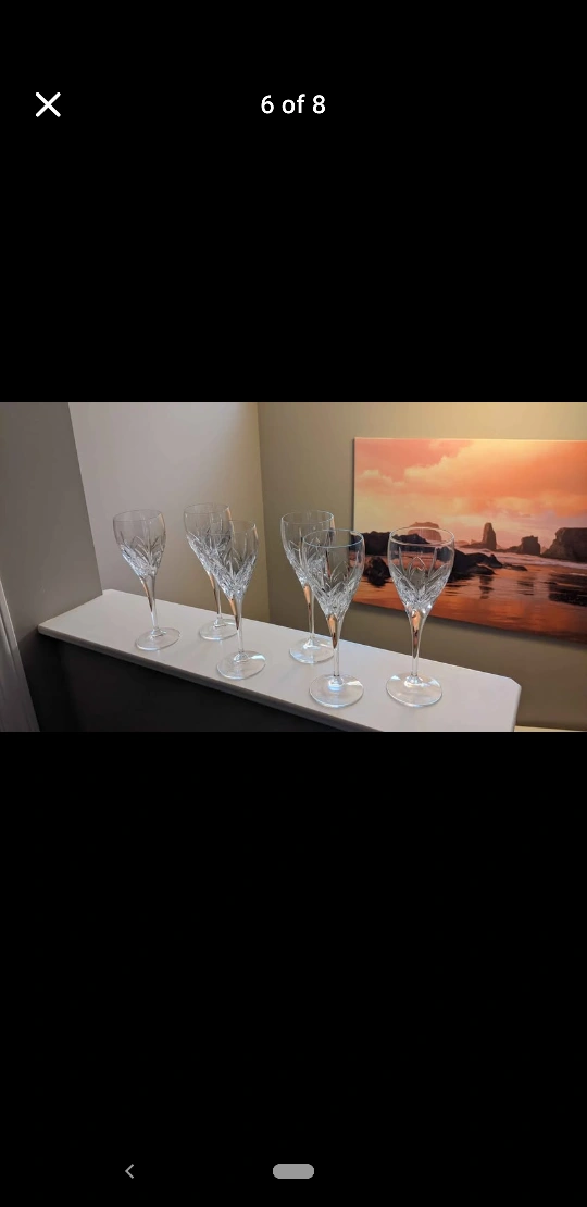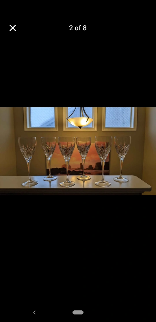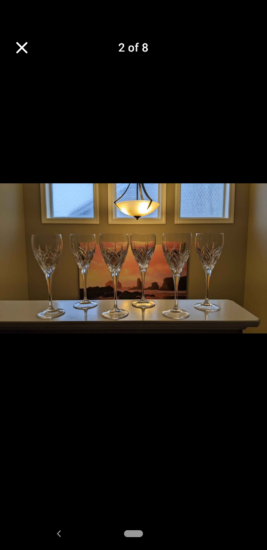 Elegant crystal wine glasses. Set of six. Beautiful cut pattern. Perfect for entertaining.