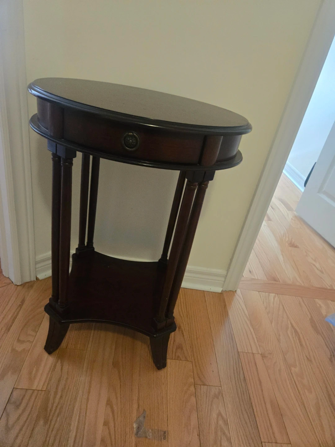 Dark Wood Oval Side Table with Drawer