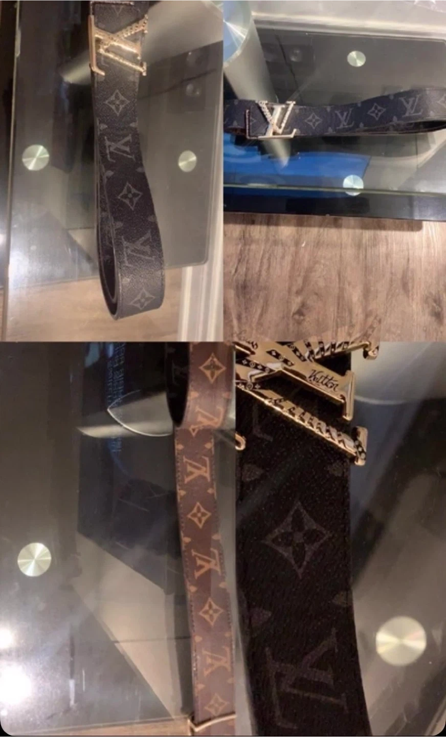 Selling a Louis Vuitton belt with the classic LV logo pattern. The belt features a gold-tone buckle. It's in good condition and ready to add a touch of luxury to your wardrobe