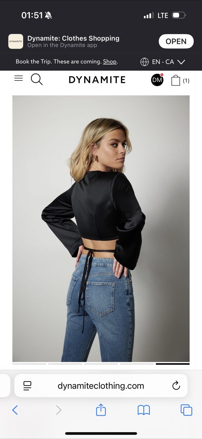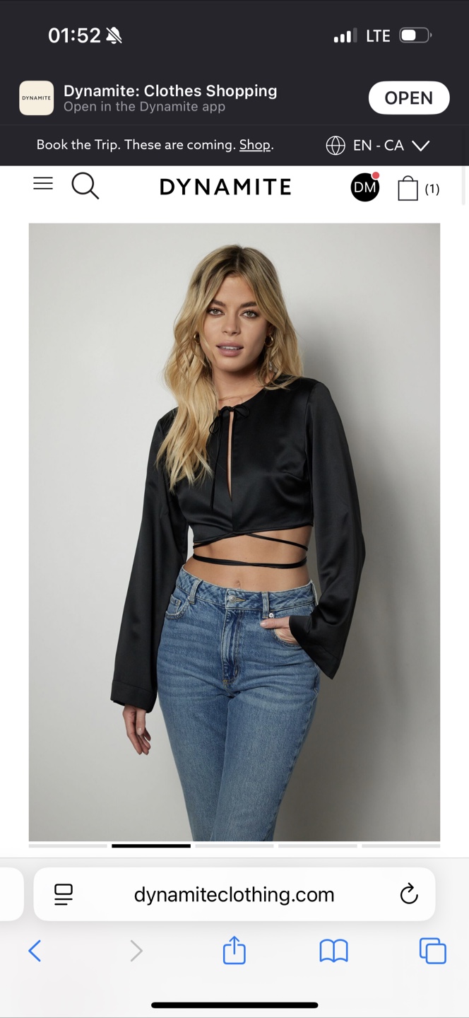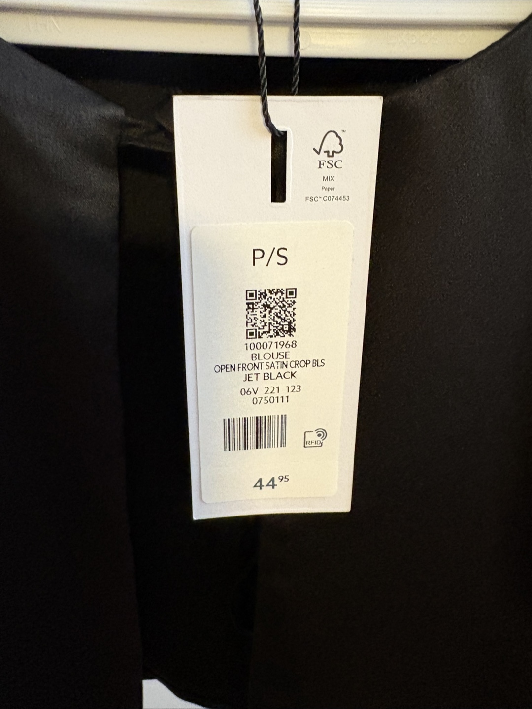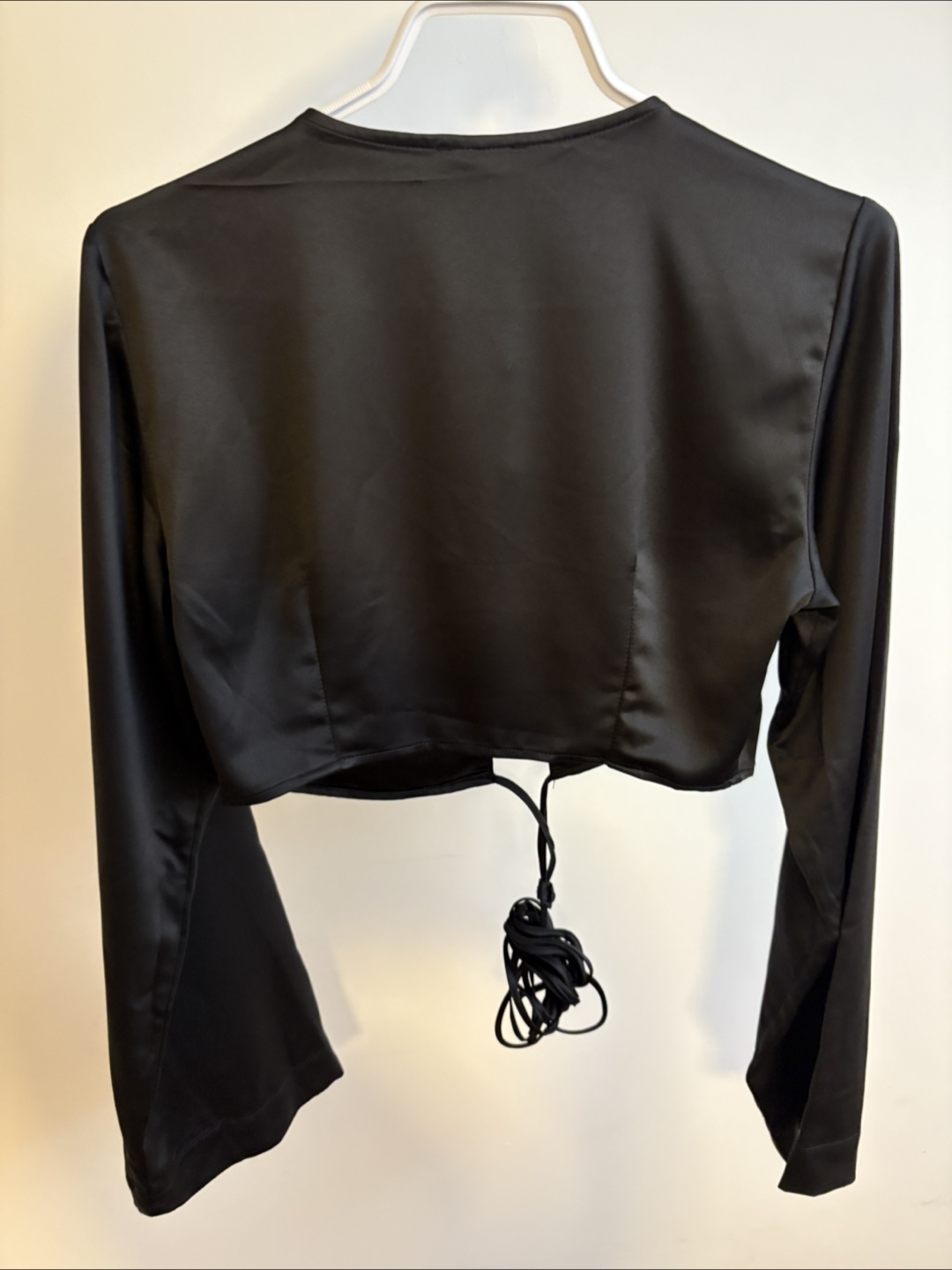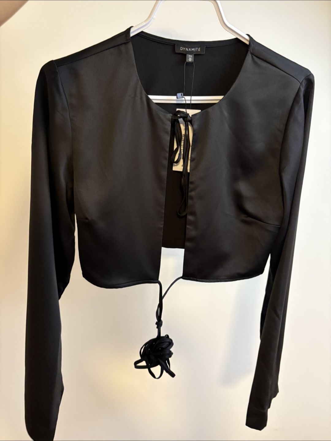 Dynamite Open Front Satin Blouse - size small Color: Jet Black. Original price was $44.95. New with tag, never worn, doesn’t fit me.