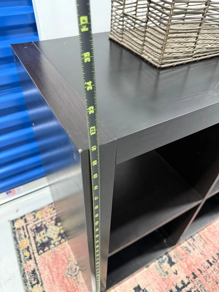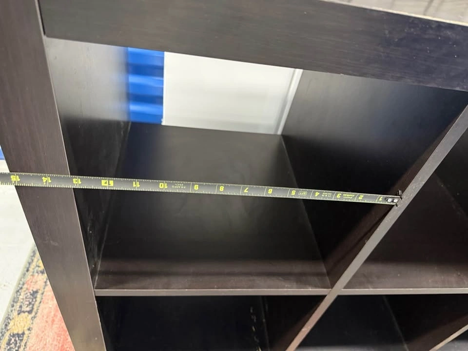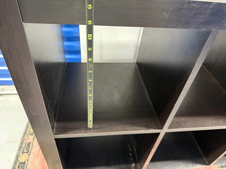 Solid wood 8 cube storage shelf, extremely sturdy and heavy. Not MDF or IKEA. This piece is strong enough for books, vinyl records, pottery, or even shop/retail display. Surface has scratches and marks from use, but it’s fully solid and can be refinished, painted, or used as is. Measurements: 57 x 31 x 16.