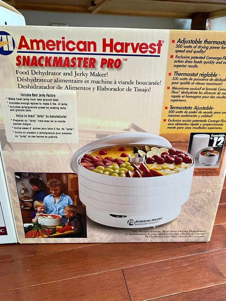 Buy & SellSNACKMAKER PRO Food Dehydrator & Jerky MakerSNACKMAKER PRO Food Dehydrator & Jerky Maker$200AMERICAN HARVEST 500 WATTS FOOD DEHYDRATOR AND JERKY MAKER. EXPANDABLE TO 12 TRAYS. American MADE.WHERE TO MEETCheck LocationView MapSELLERCathyIslington181 review0 chats·0 favorites·11 viewsSEND CHAT TO SELLERHi Cathy! I’m interested in your listing.Hi Cathy! I’m interested in your listing.Get the Karrot app to chatSign In to chat