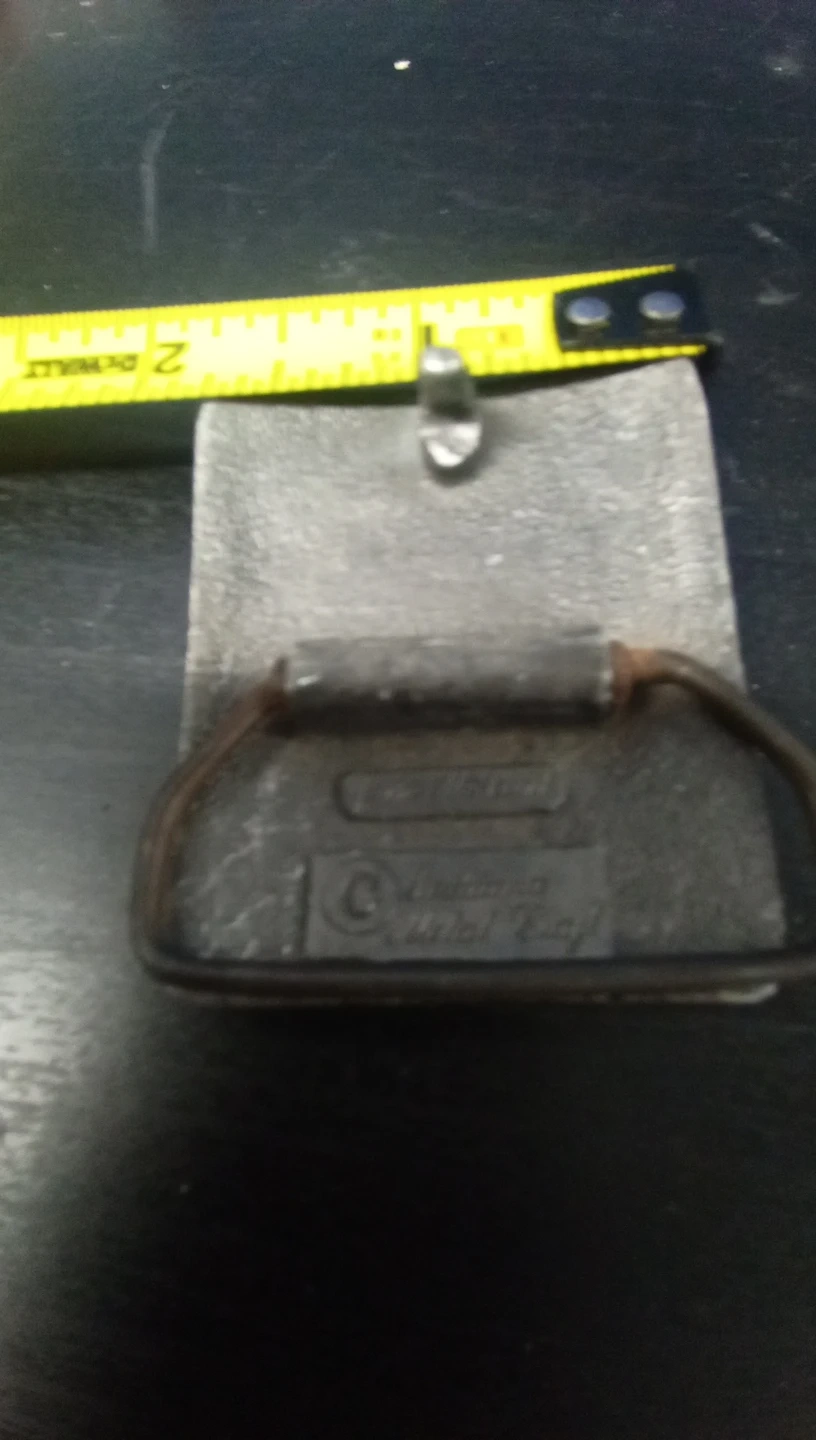 This is a metal belt buckle with a sunburst design and intricate detailing in the center. It's marked "Jesse McCord Tradition". It measures approximately 2.5 inches by 2.5 inches.