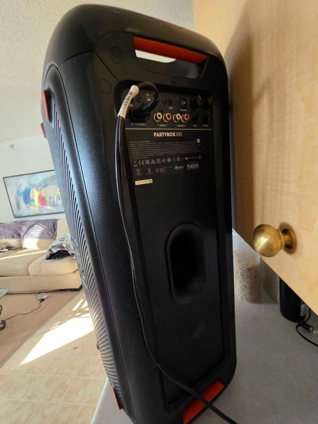 Selling a JBL Partybox 300 portable Bluetooth speaker, perfect for parties or outdoor gatherings with powerful sound and vibrant light effects. This speaker is used but in good condition and has been well-maintained. It delivers high-quality audio and features a built-in rechargeable battery for hours of playtime. Includes Bluetooth Connectivity, USB and AUX Inputs, Built-in Light Show, and Rechargeable Battery. Also includes the bonus 12V car power cord, great for camping or lake trips. The price is firm at $400. Cash accepted.