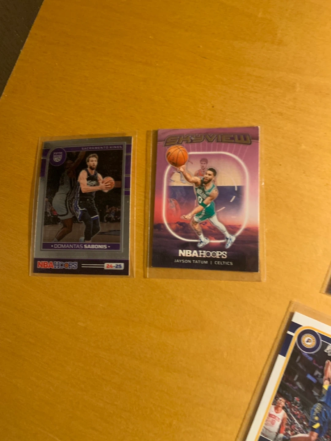 Collection of NBA Hoops trading cards featuring various players. Cards include Anthony Edwards, Giannis Antetokounmpo, and Jayson Tatum. Excellent addition for any basketball card collector! (BUY SEPARATELY OR ALL TOGETHER) (slide 3 features cards on the main page that have glair on slide one) ALL IN CASES