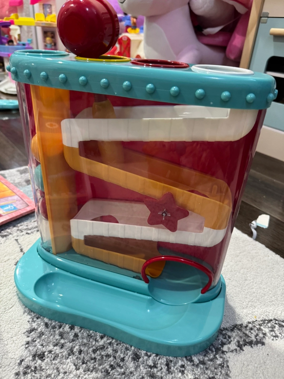This is a fun ball drop toy for kids! It features multiple levels and colourful balls to keep your little one entertained. Great for developing hand-eye coordination and problem-solving skills. The toy is in good condition and ready for a new home!