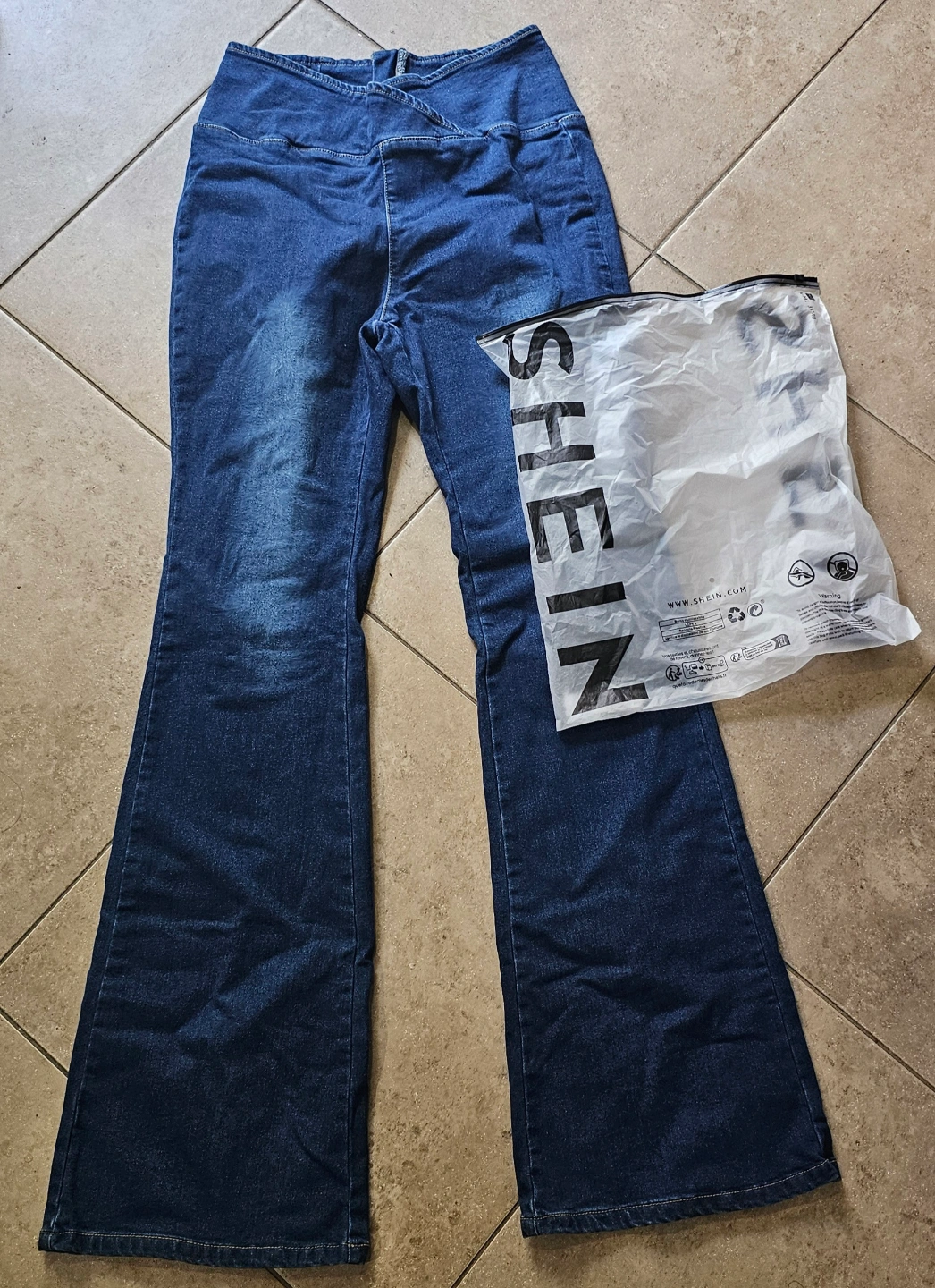 SHEIN Dark Wash Flare Jeans (crisscross waist) #freecycle