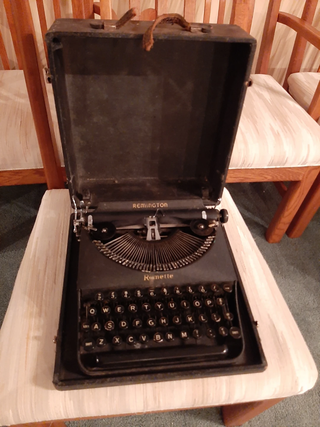 This is a vintage Remington "Noiseless" portable typewriter. It includes its original carrying case. This typewriter would be great for collectors or for someone looking for a unique writing experience. It's a classic piece!