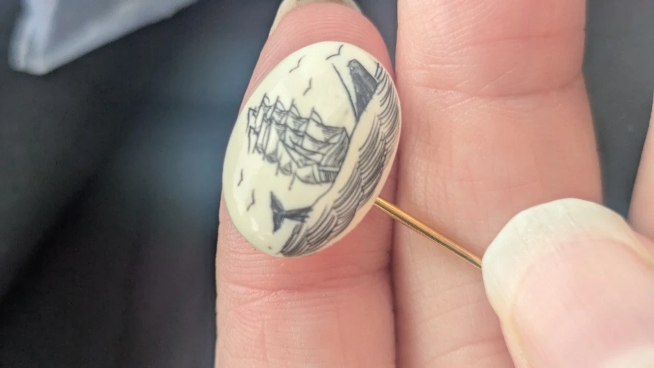 Vintage Scrimshaw Ship and Whale Stick Pin