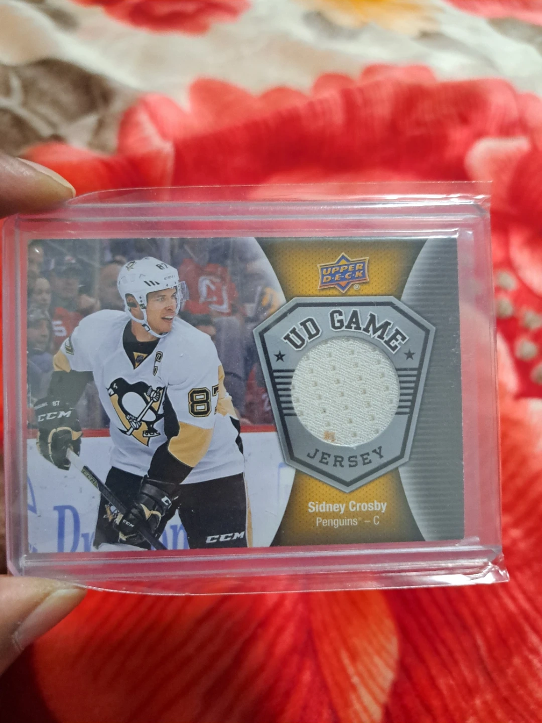 Selling a Sidney Crosby Upper Deck Game Jersey hockey card. It's from the 2016-17 Upper Deck Series One Hockey collection. A great piece of memorabilia for any hockey fan!