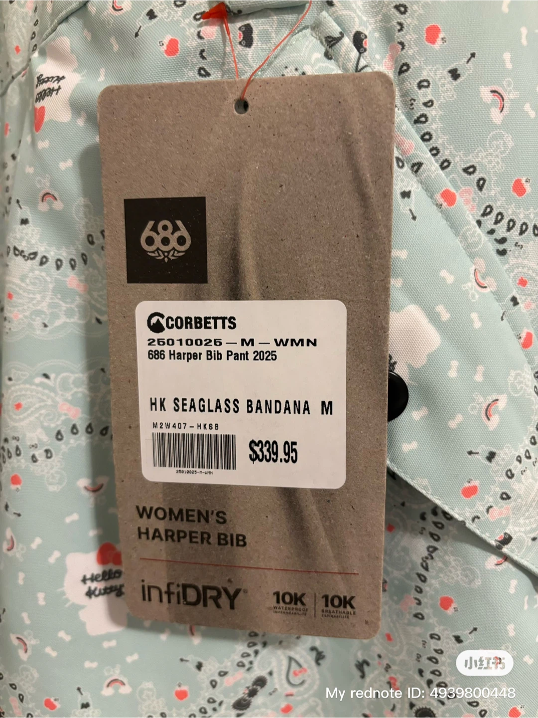 Selling a set of 686 snow pants in collaboration with Hello Kitty! They're a women's size medium and feature the HK Seaglass Bandana design.