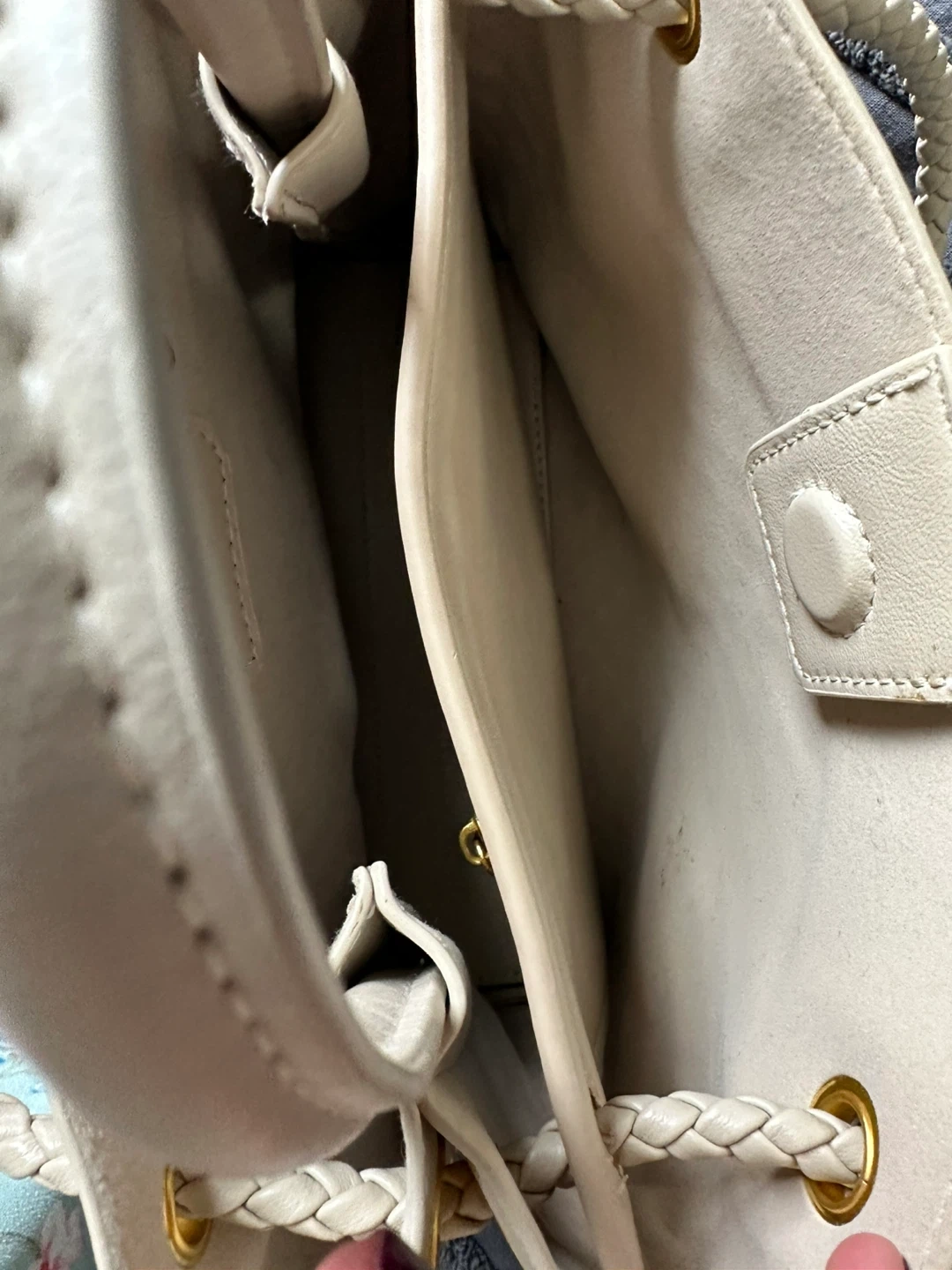 White Woven Leather Top Handle Bag