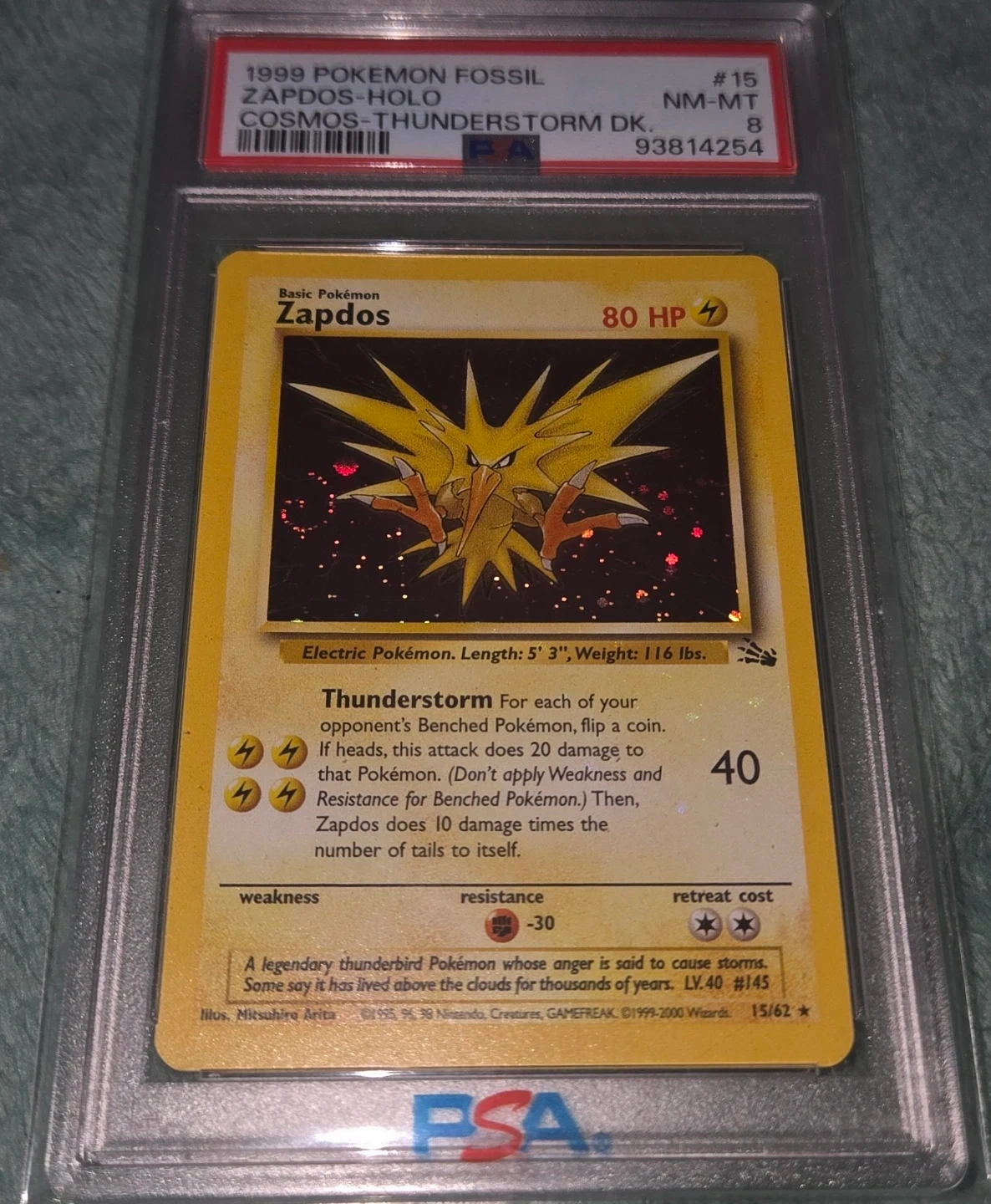 Pokemon Zapdos PSA 8 Fossil Cosmos-Thunderstorm Zapdos Holo