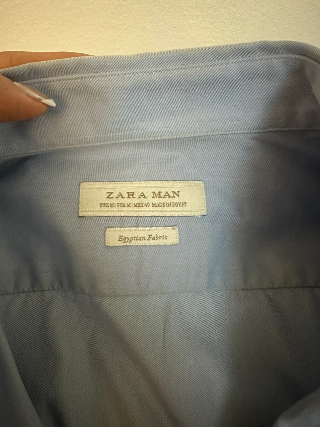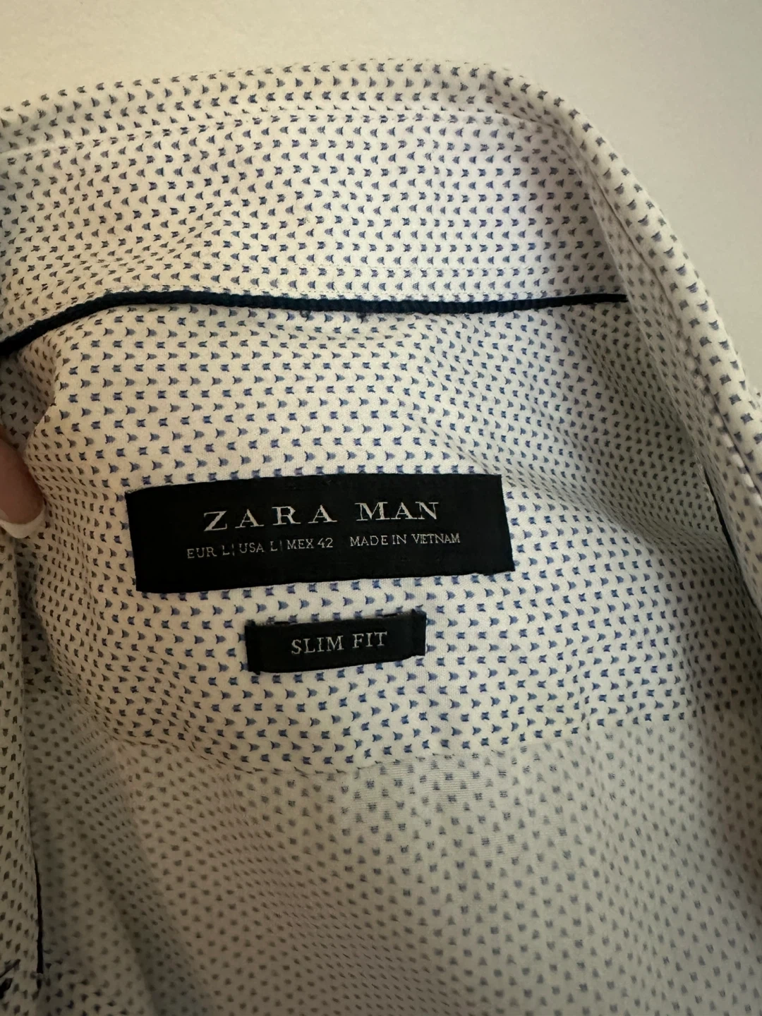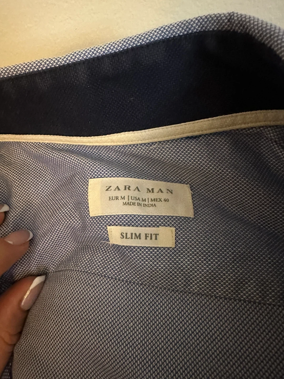 Selling a set of Zara Man slim fit shirts. There are four shirts in total, all size medium. They come in a variety of blue and white colours.