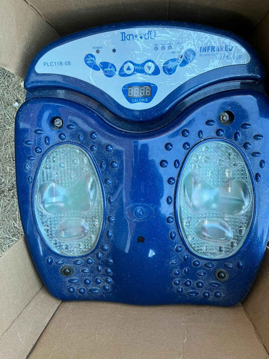Selling an IkneadU infrared blood circulation massager. It features adjustable speed and a timer. It also displays calorie count.