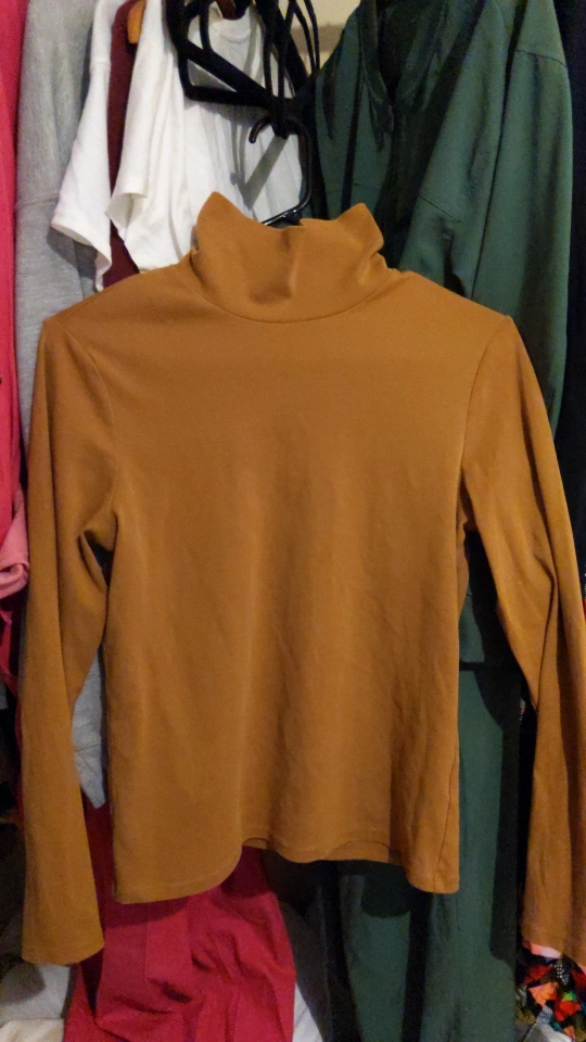 Long sleeve, turtleneck top. Brown in colour. Small size.