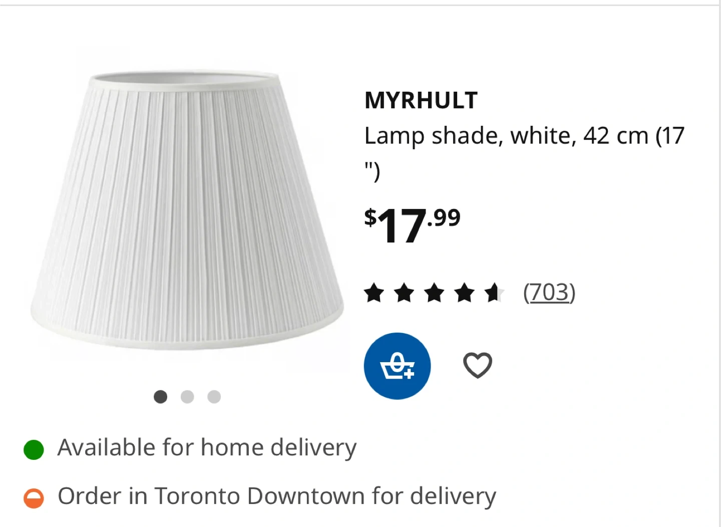 Selling a MYRHULT lamp shade from IKEA in off white. It's 42 cm (17") in size. Retails for $17.99 at IKEA. Perfect for adding a touch of elegance to any room