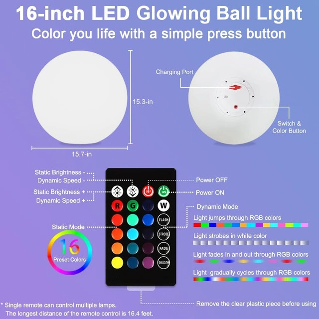 16" RGB LED Globe Light Outdoor/Indoor Color Changing Ball