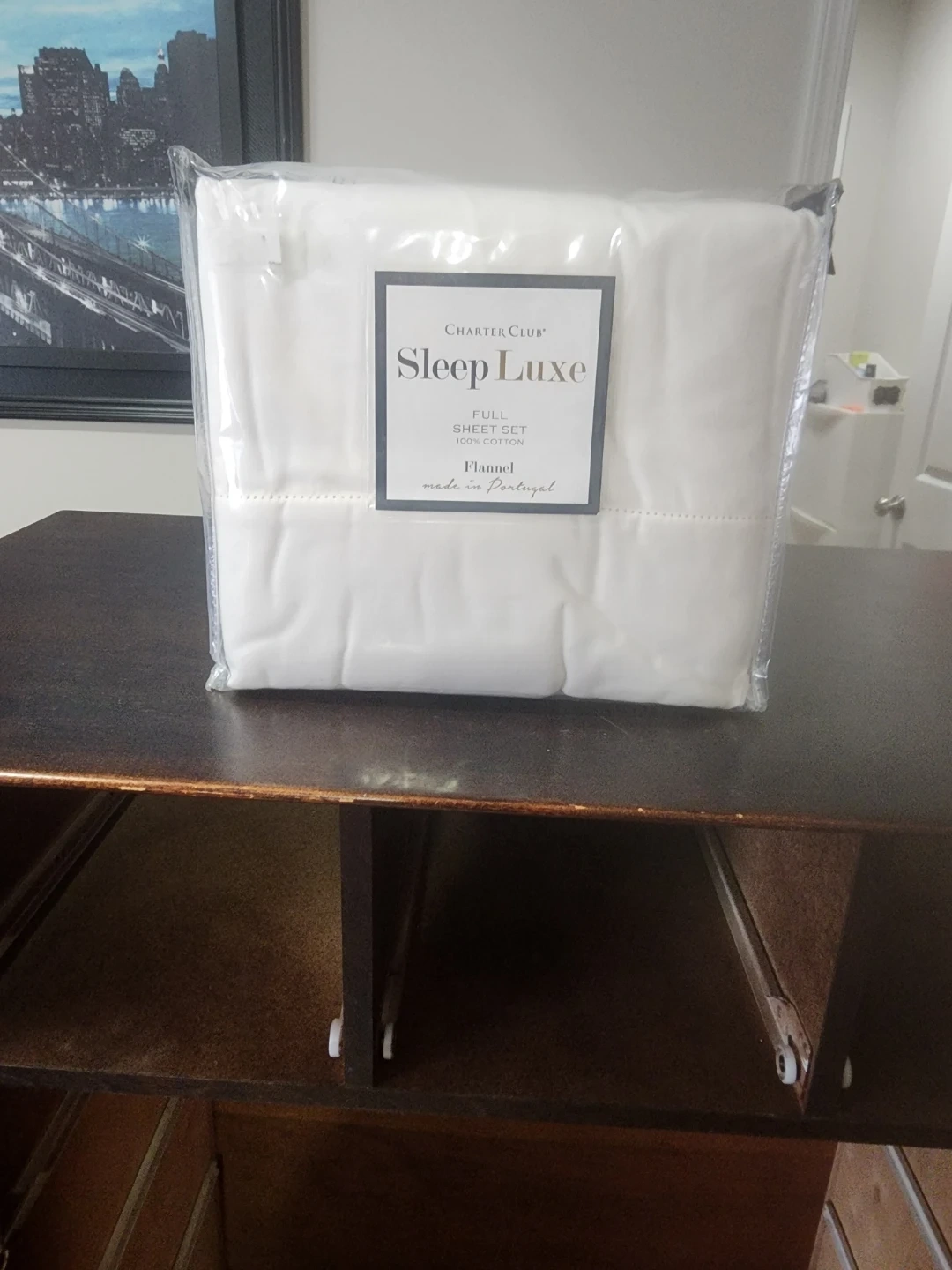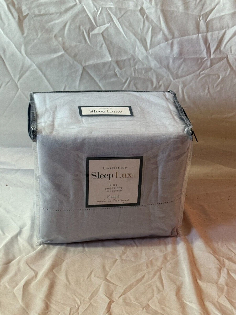 Charter Club Sleep Luxe FULL sheet set. Crafted with premium quality 100% cotton. Brushed, napped flannel is lightly sheared and has heavy weight to reduce pilling. Machine washable. Made in Portugal.