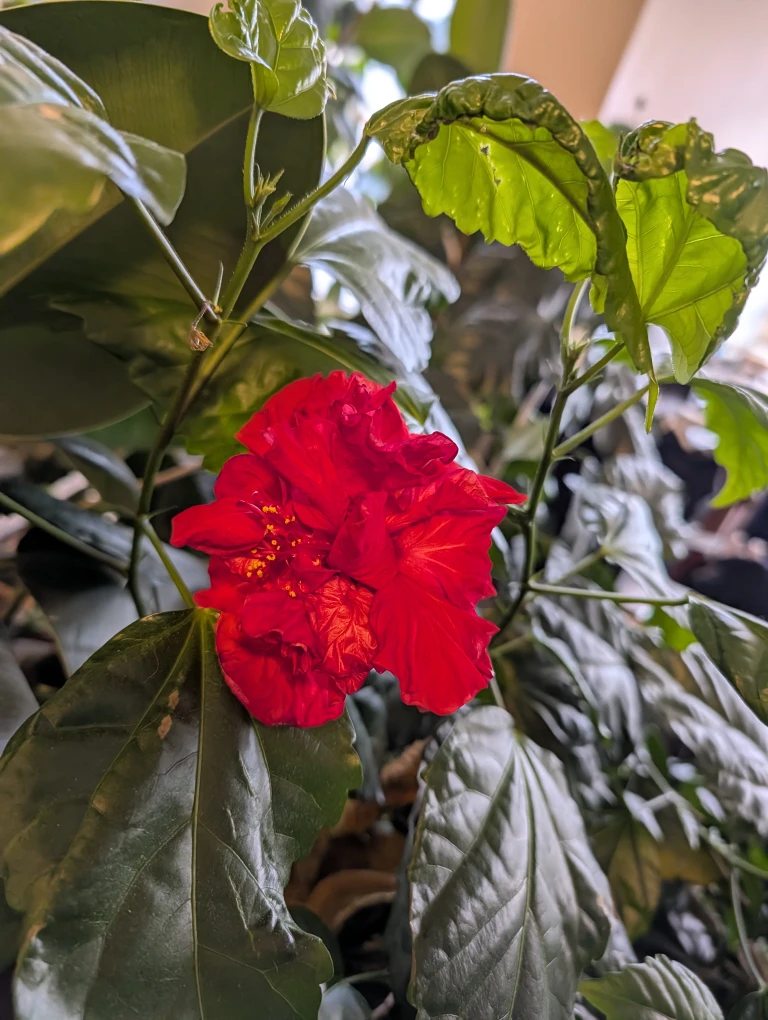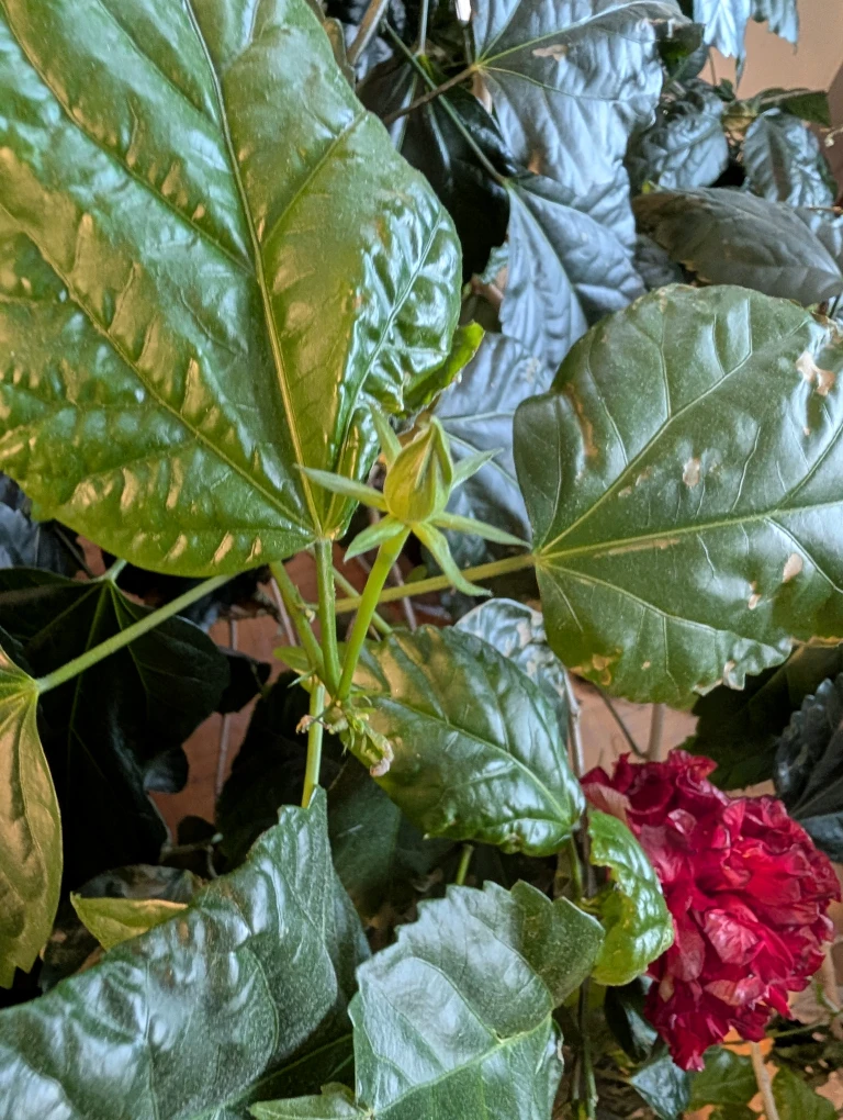 Large flowering hibiscus plant. My mom moved in with me and we don't have room for this. It is constantly flowering red/pink flowers. It has many many buds on it.