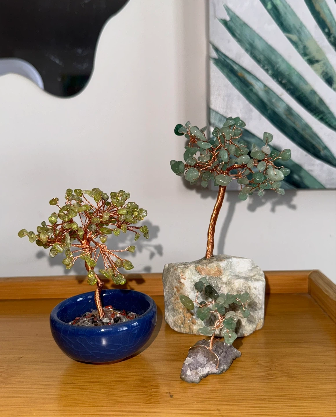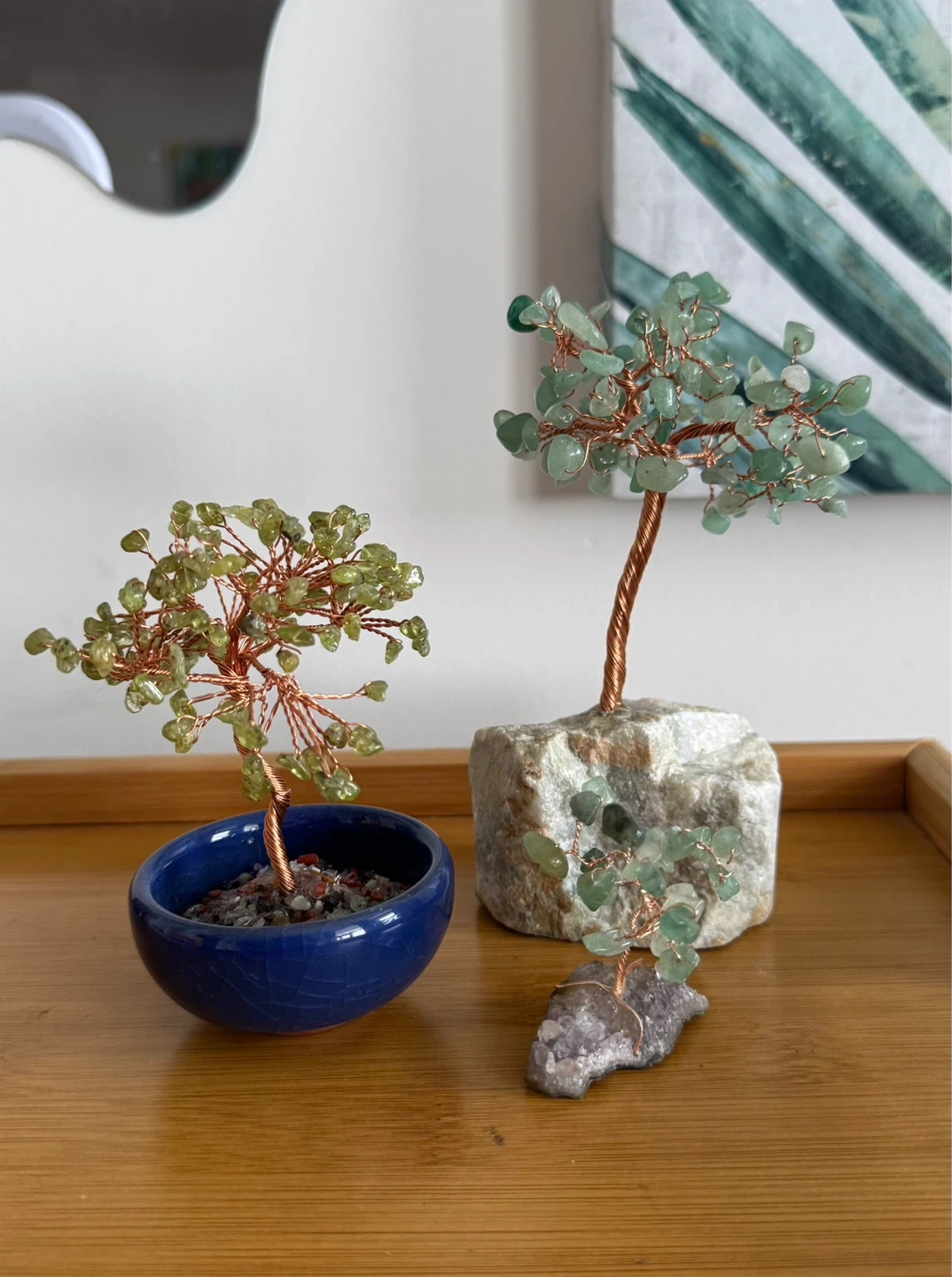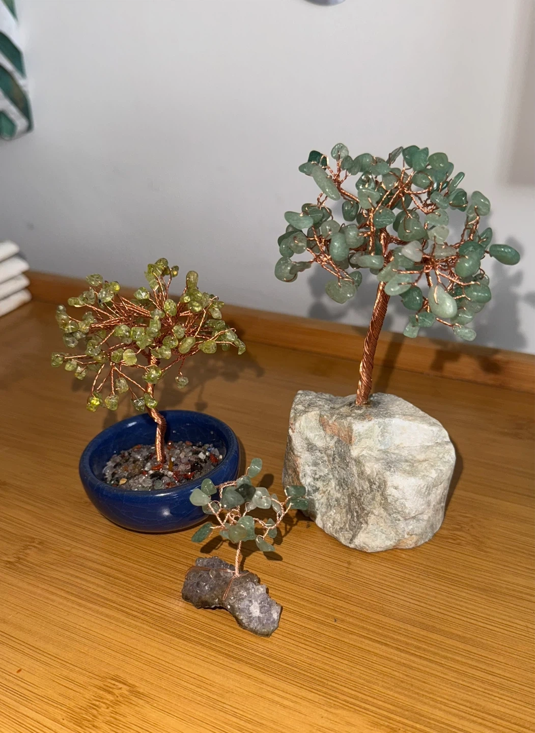 Selling 3 handmade crystal copper wire trees; Each tree is made with polished natural crystals and wrapped in copper wire and each branch can be reshaped to the desired look.
