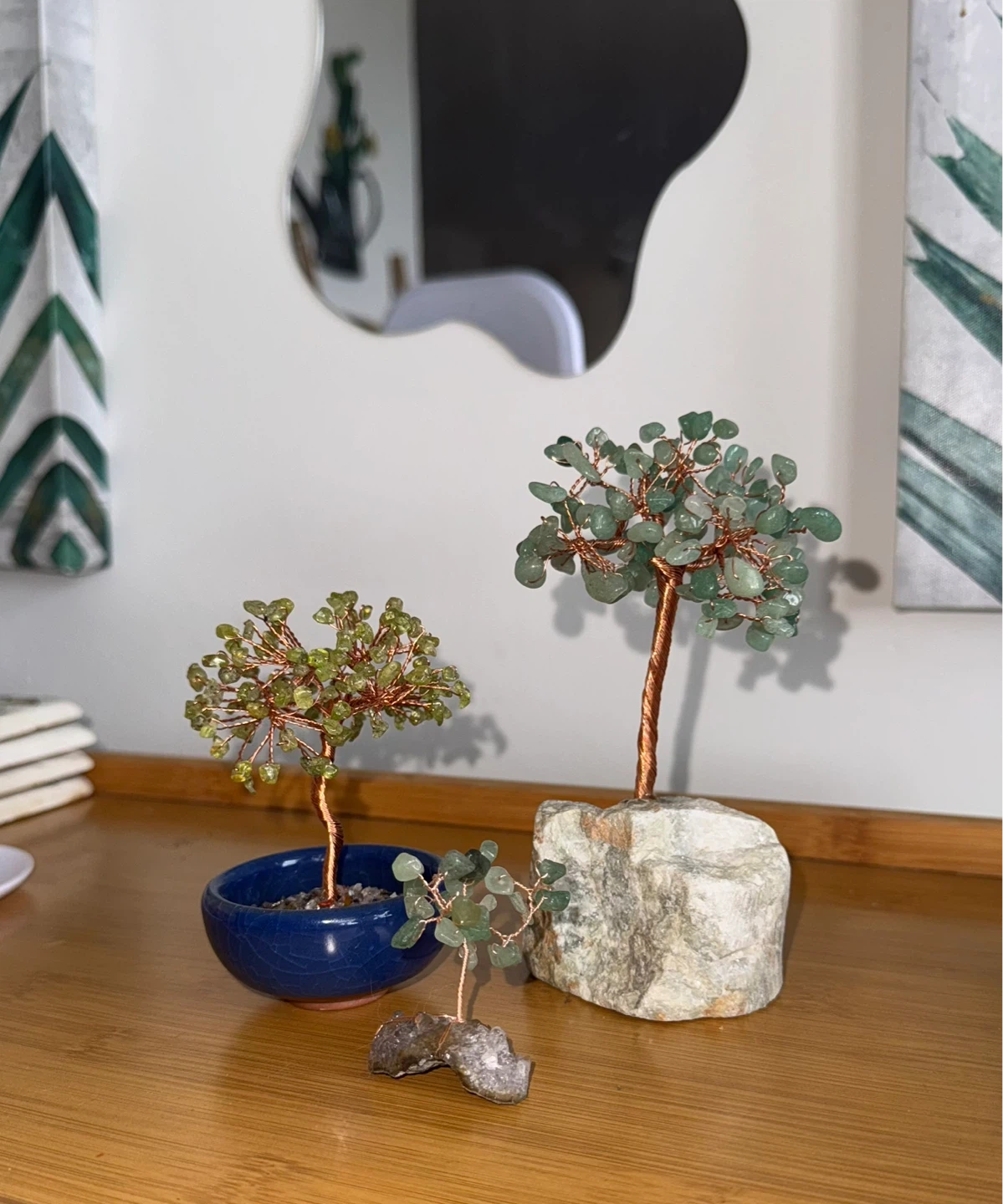 Selling 3 handmade crystal copper wire trees; Each tree is made with polished natural crystals and wrapped in copper wire and each branch can be reshaped to the desired look.