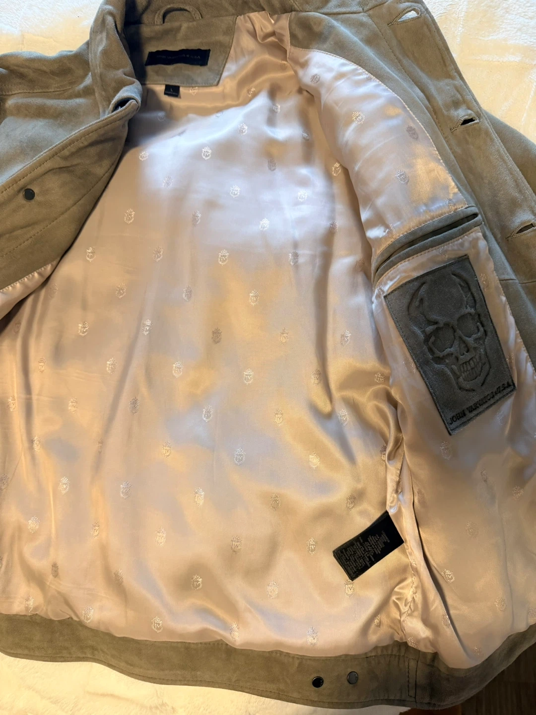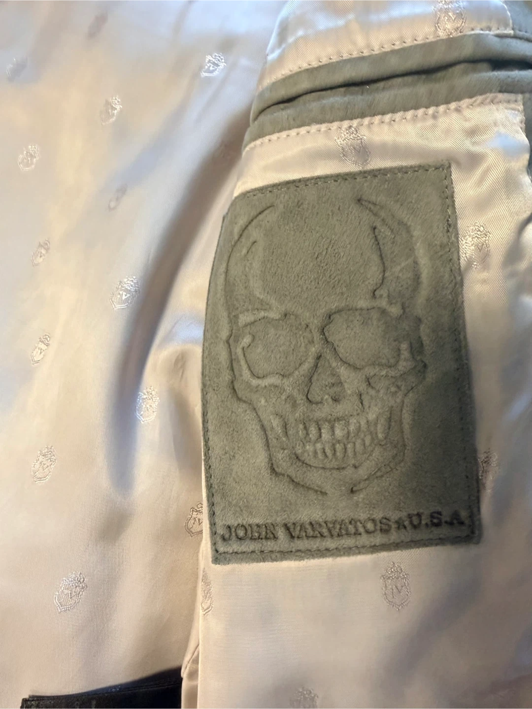 Buy & SellJohn Varvatos Suede JacketJohn Varvatos Suede Jacket$579Suede trucker jacket by John Varvatos. It has a soft lining with a skull print and two chest pockets. Material is genuine suede.ConditionLike newSizeLargeBrandJohn VarvatosWHERE TO MEETCheck LocationView MapSELLERverifiedKenCentral Lonsdale600 reviews1 chats·0 favorites·17 viewsSEND CHAT TO SELLERHi Ken! I’m interested in your listing.Hi Ken! I’m interested in your listing.Get the Karrot app to chatSign In to chat