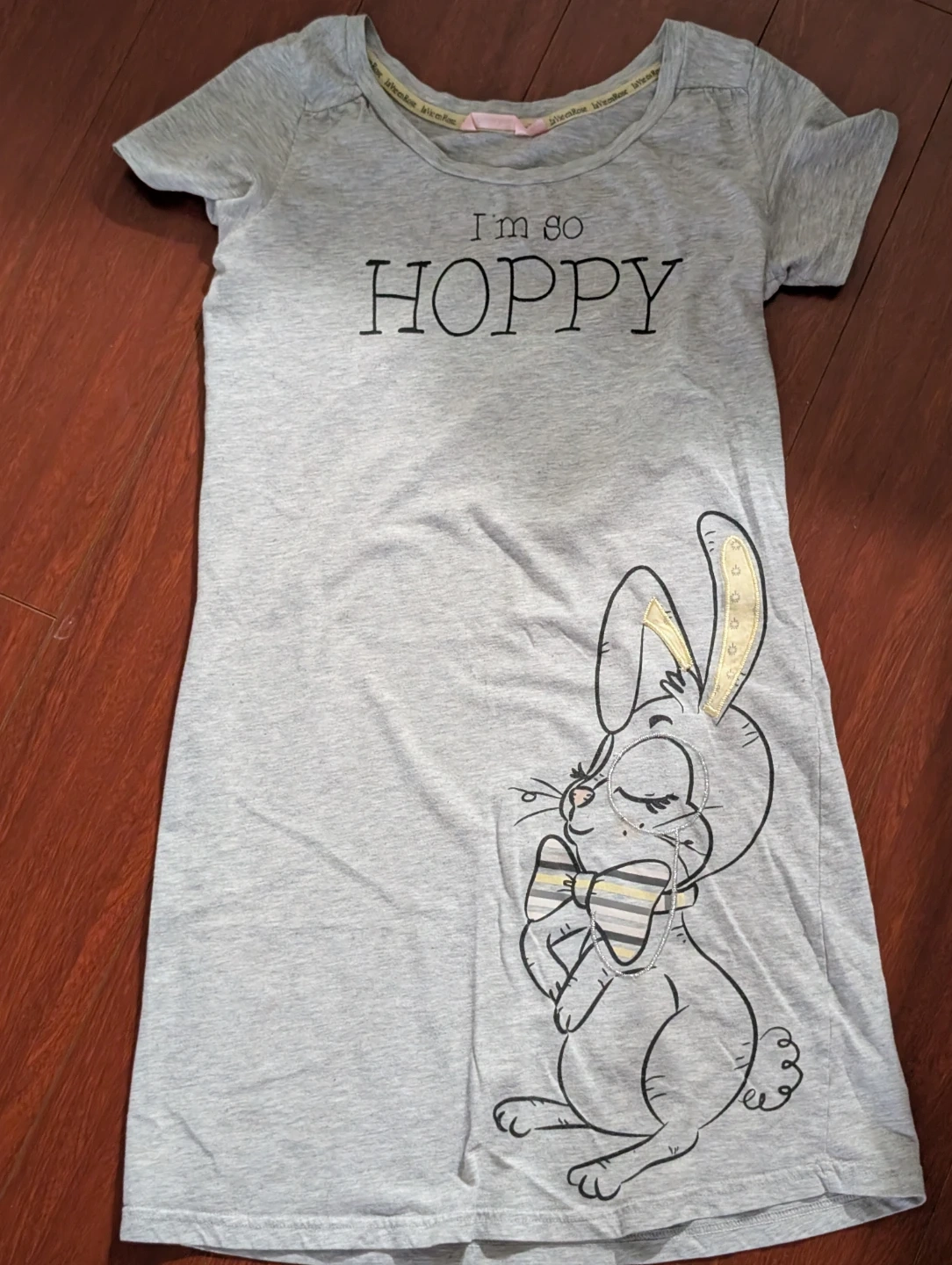 La Vie en Rose Grey "I'm so HOPPY" Bunny T-Shirt Dress XS pajama