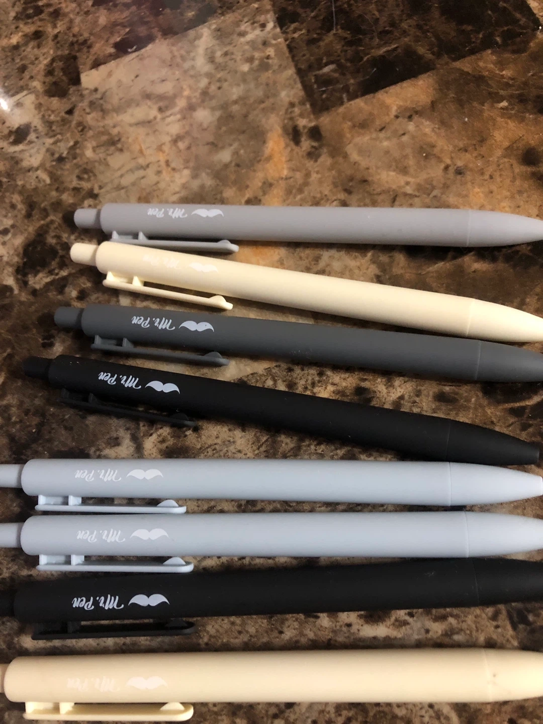 Selling a new set of 8 Mr. Pen pens in various matte colours: beige, black, dark grey, and light grey. These pens feature a smooth writing experience and a comfortable grip. They're great for everyday note-taking or journaling!