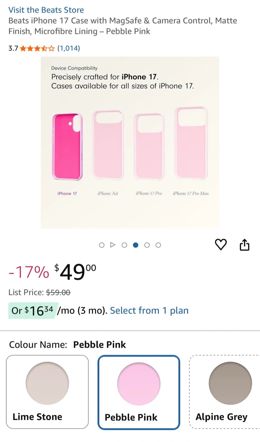 This is a brand new Beats iPhone 17 case in pebble pink! It has MagSafe and camera control, with a matte finish and microfibre lining. The original price was $59 Comes with the box