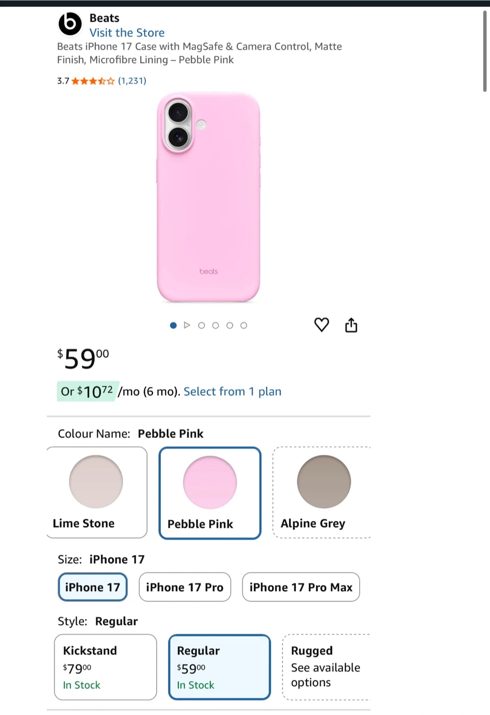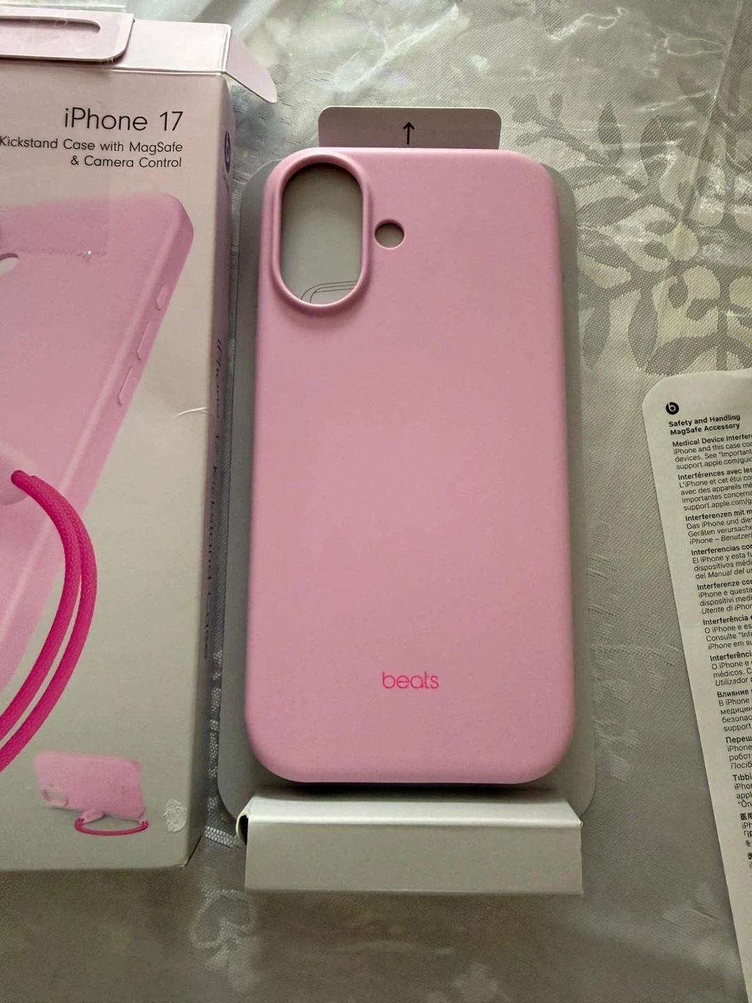 This is a brand new Beats iPhone 17 case in pebble pink! It has MagSafe and camera control, with a matte finish and microfibre lining. The original price was $59 Comes with the box