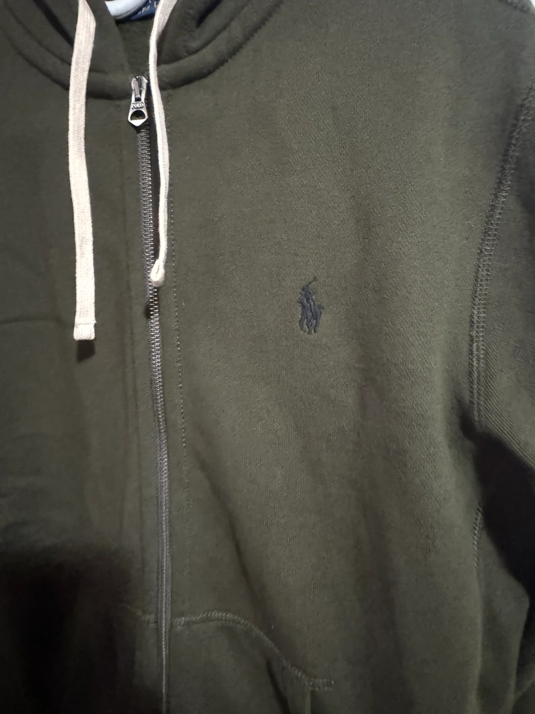 Polo Ralph Lauren full-zip hoodie in a size small. It's a deep green colour and features the signature embroidered pony logo. This hoodie is made for comfortable layering.
