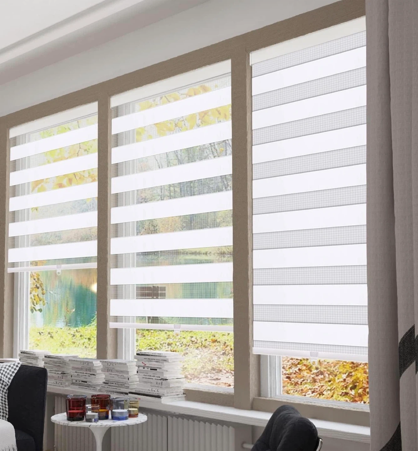 NEW 3X Cordless Zebra Blinds, 59” W x 72” H, White